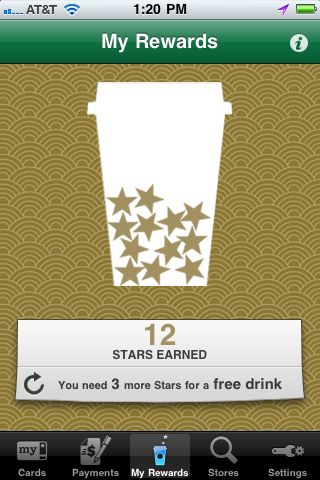 If you are a Starbucks fan you need to download the Starbucks mobile app. It makes it so easy to reload your card and now you can even pay with your phone! The other day CSP & I were in the drive thru at our local Starbucks. Before we left the house I reloaded my card via the app but when I handed the card to the drive thru dude he said there wasn’t enough money on the card, the reload hadn’t gone through yet. He asked did I have the mobile app and just scanned my phone! So cool! I also like how I can keep track of how many stars I’ve earned and how long til my next free drink!