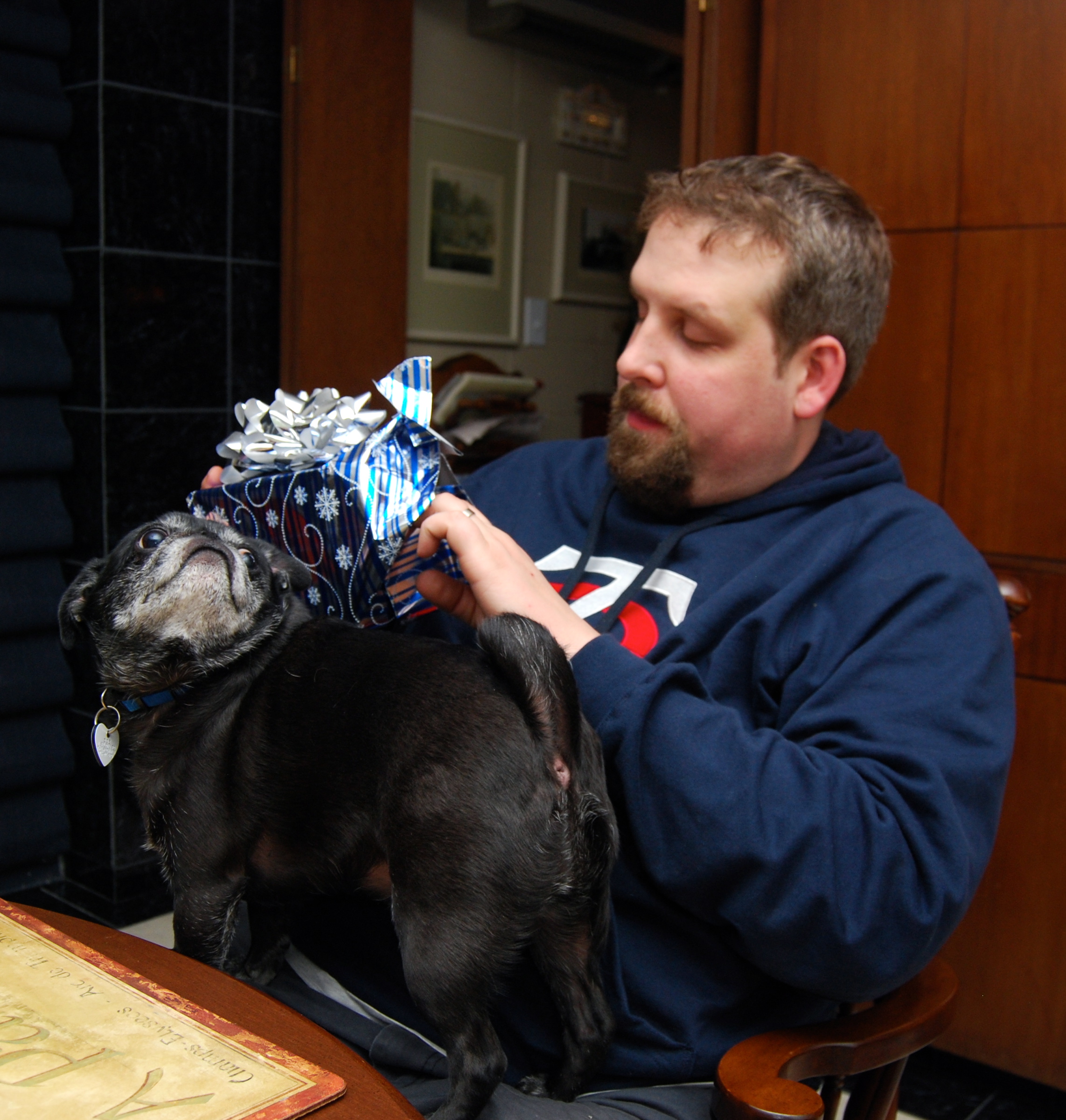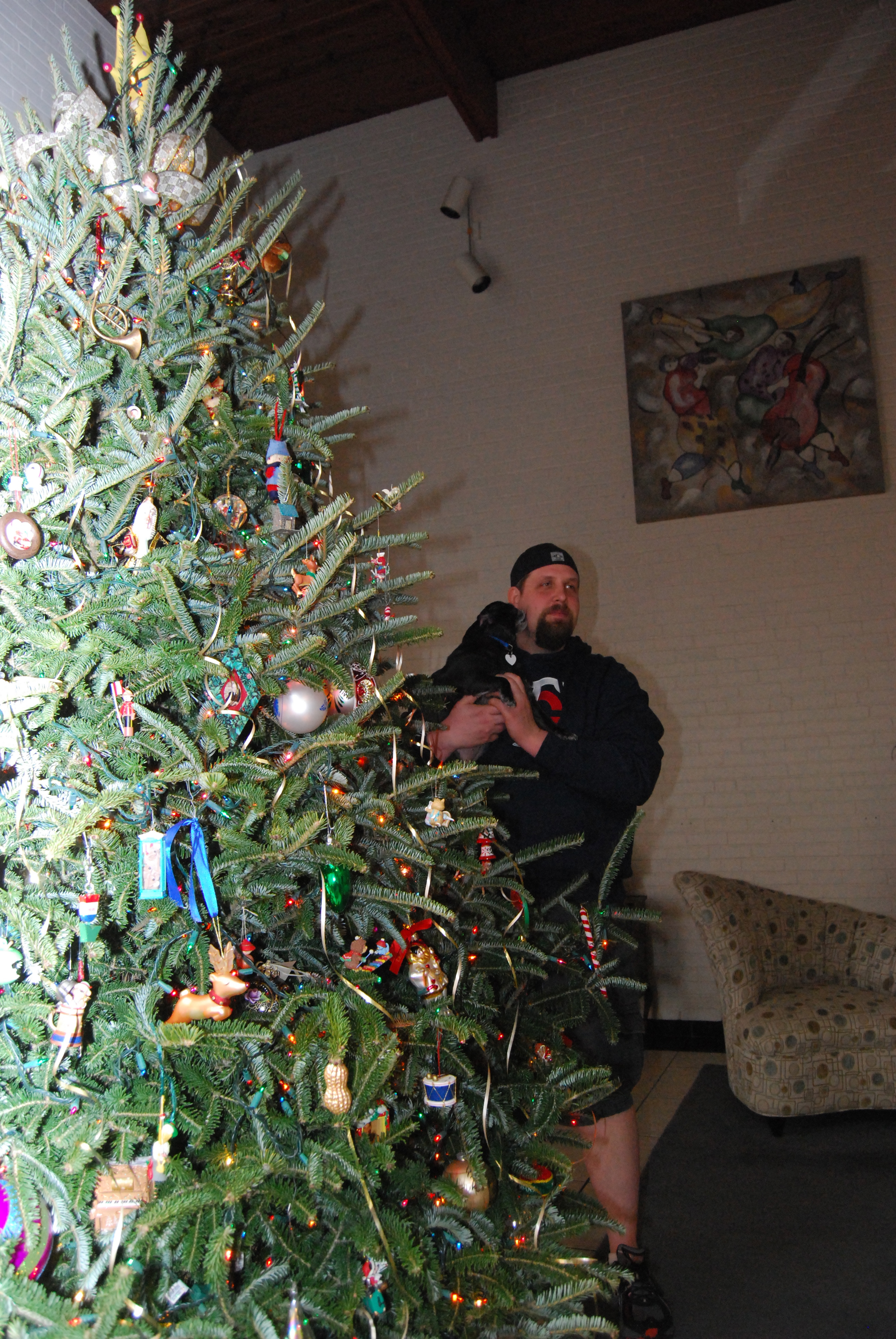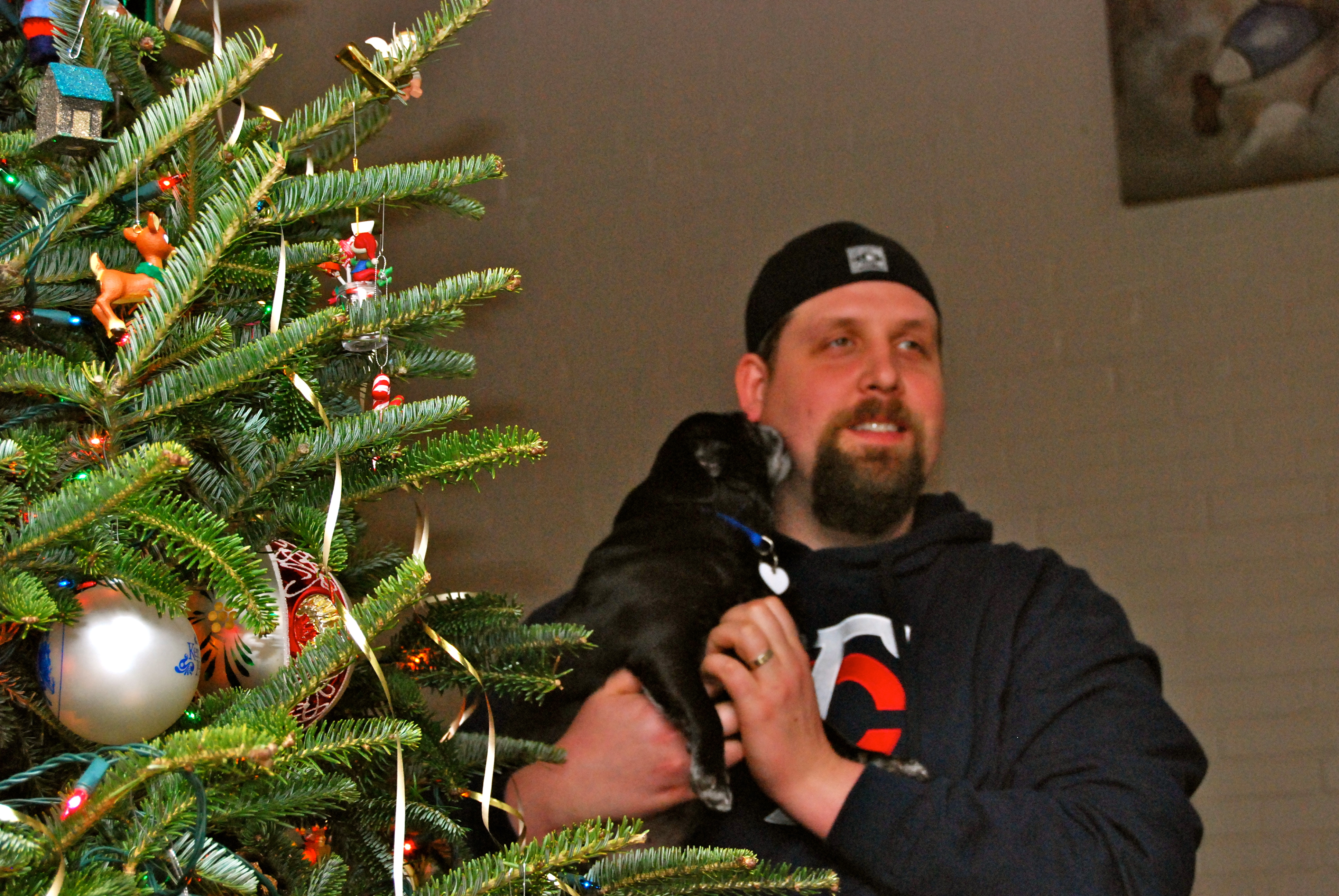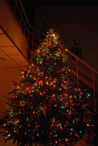Monday CSP & I met up with his parents at The Liberty Gastropub in SouthEnd for birthday lunch. After lunch CSP & I went home to get Zoe then we headed out to his parents’ house for dinner, cake, and presents. They had their tree all decorated.