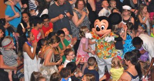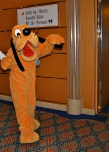 And how wonderful that they celebrated 50 years of marriage on a Disney Cruise! We finally found our room but it was being cleaned. So we went to the future cruise booking desk and got some price quotes for next year. Next thing we knew a dance party erupted! Here came Pluto: