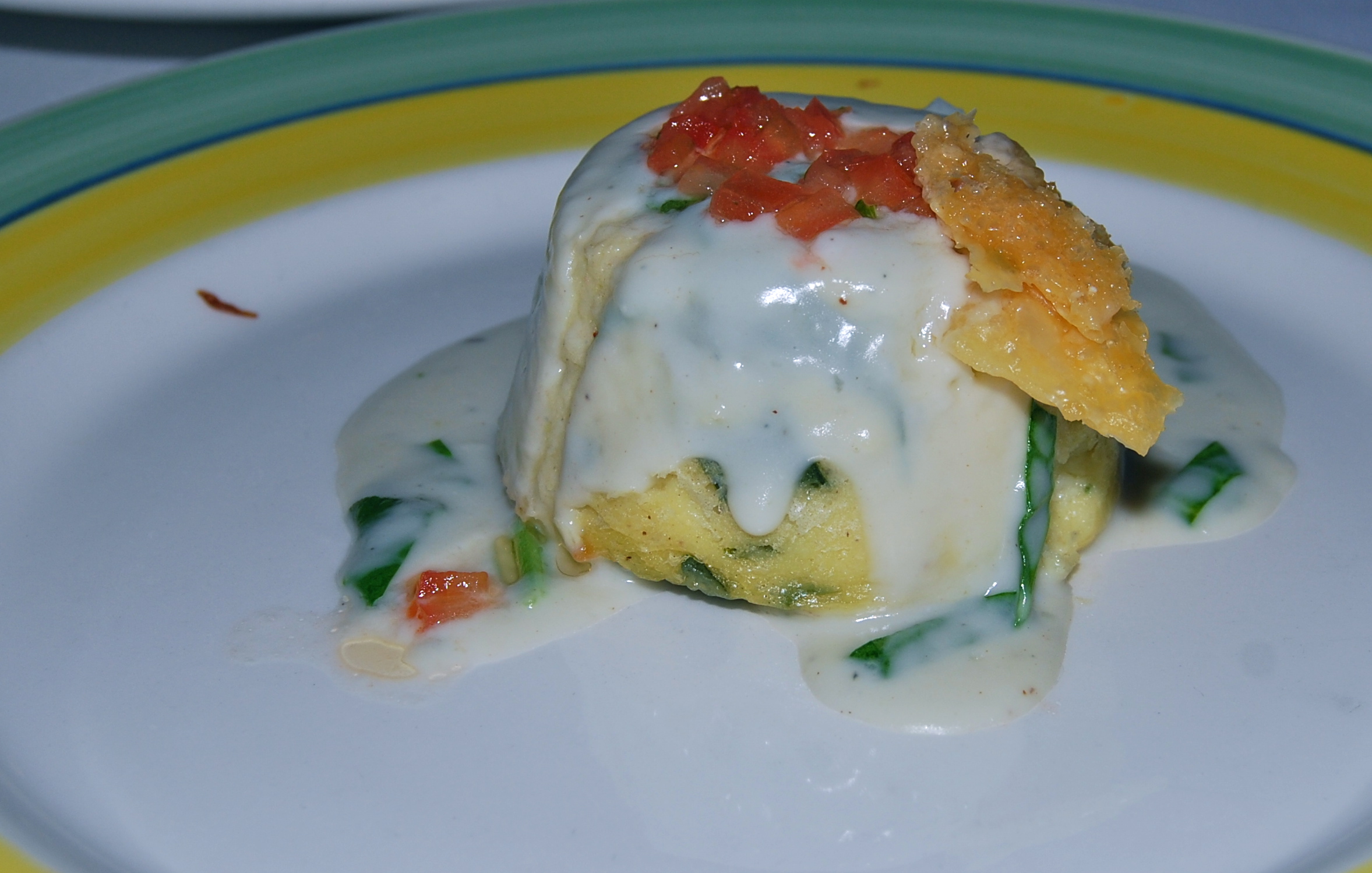 and dinner was at Parrot Cay. CSP chose the marinated salmon and a parmesan/bleu cheese souffle for his appetizers.