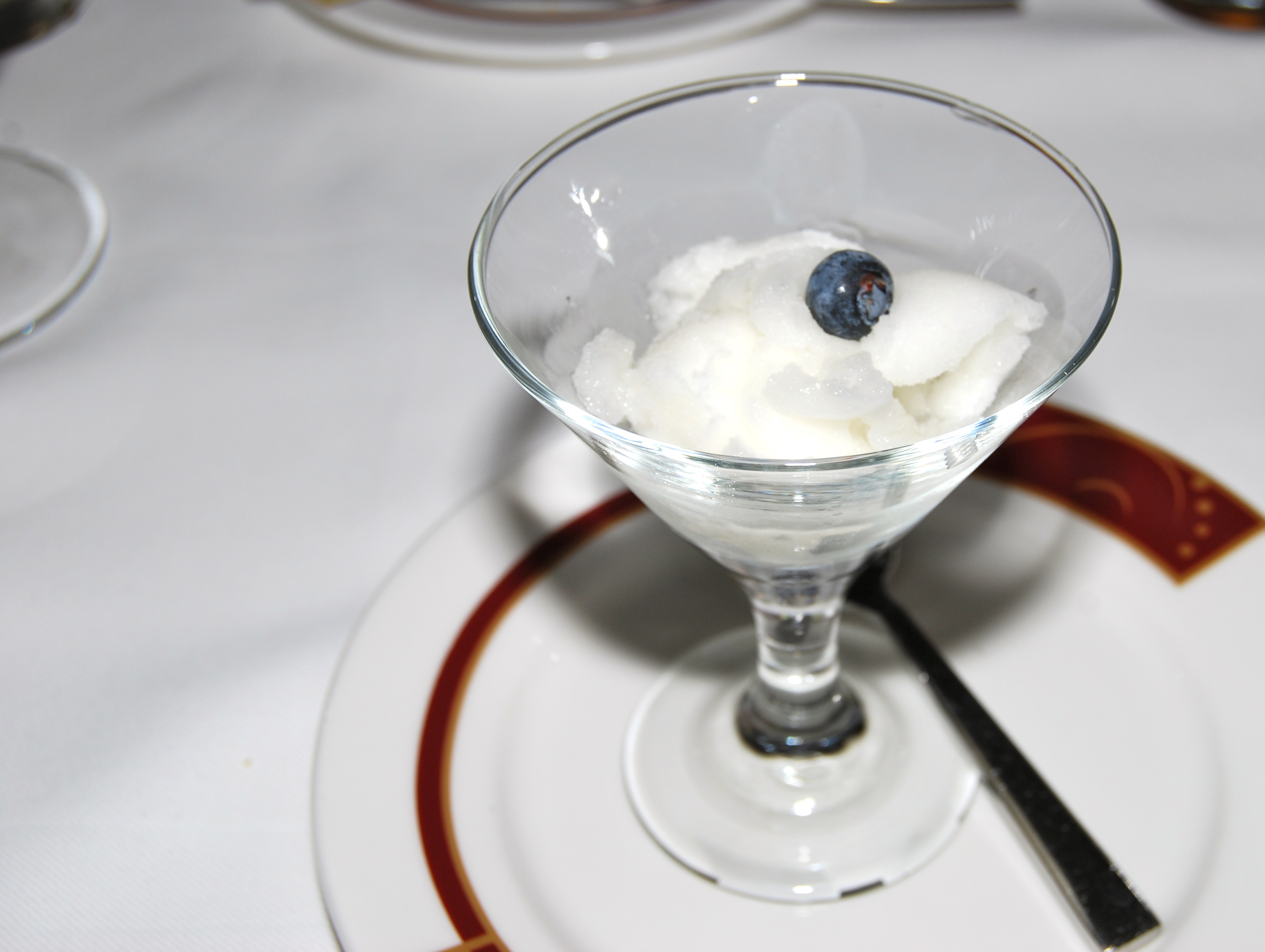Maria brought us a lemon sorbet to cleanse our palates before the main course.