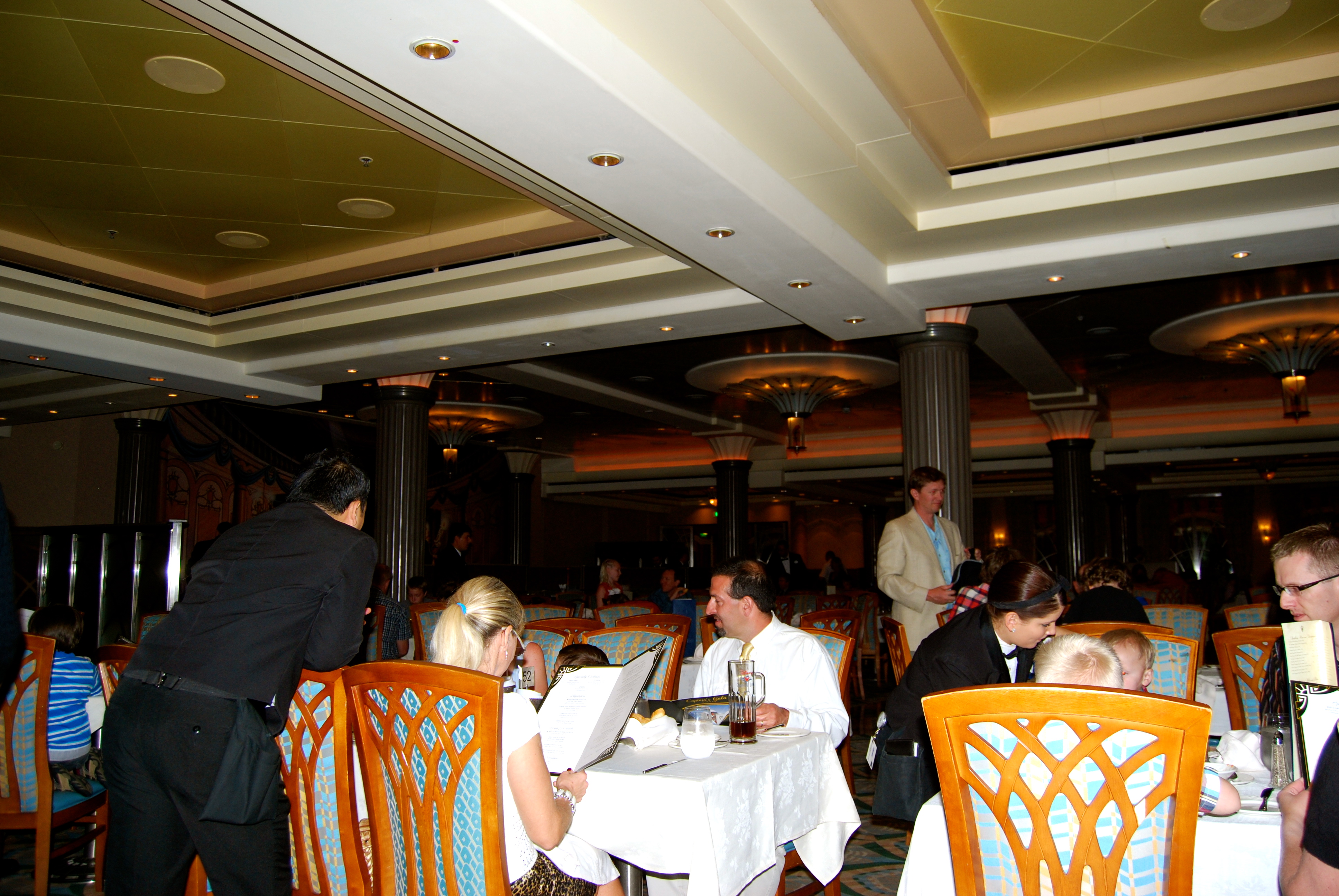 It’s so interesting to me what people wear on cruises these days. When I was 7 I went on my first cruise. Back then people REALLY dressed for dinner. And formal and semi-formal nights meant tuxedos and suits and fancy dresses. Some people on this cruise still fancied up but there were some who wore beach wear into the dining room for dinner! Disney asks that no flip flops or shorts or beachwear be worn into the nice dining rooms. I think it makes it more special when you put a little effort into it.