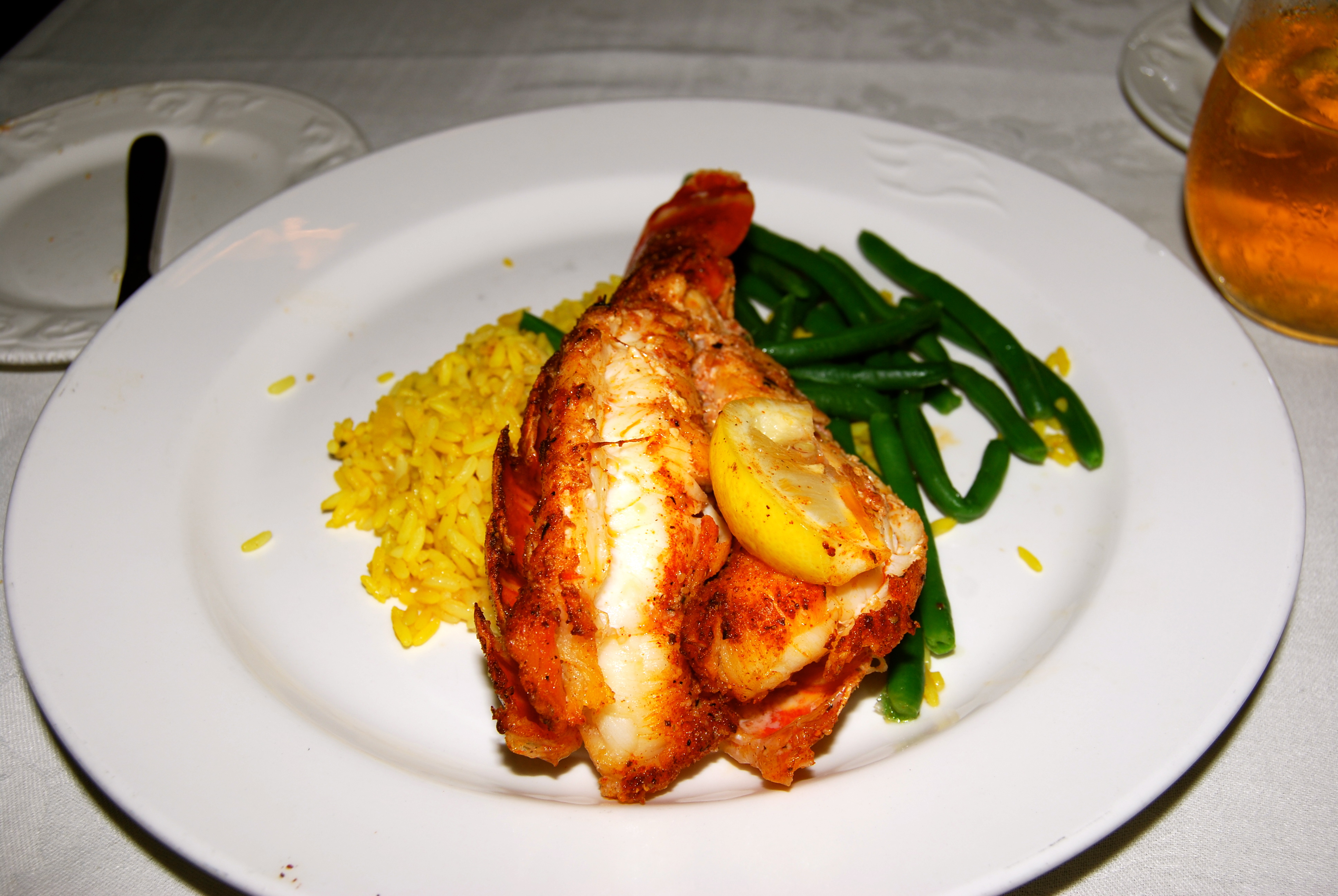 We both enjoyed the wild mushroom soup. Tonight was lobster night! We both got the lobster tail with green beans and rice.
