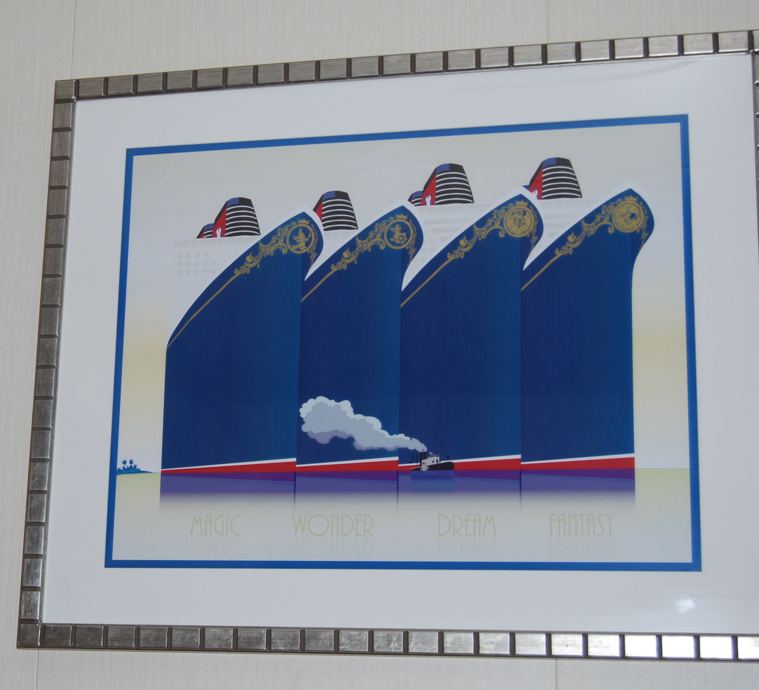 This picture of the 4 ships in the Disney Fleet hangs at the foot of the bed.