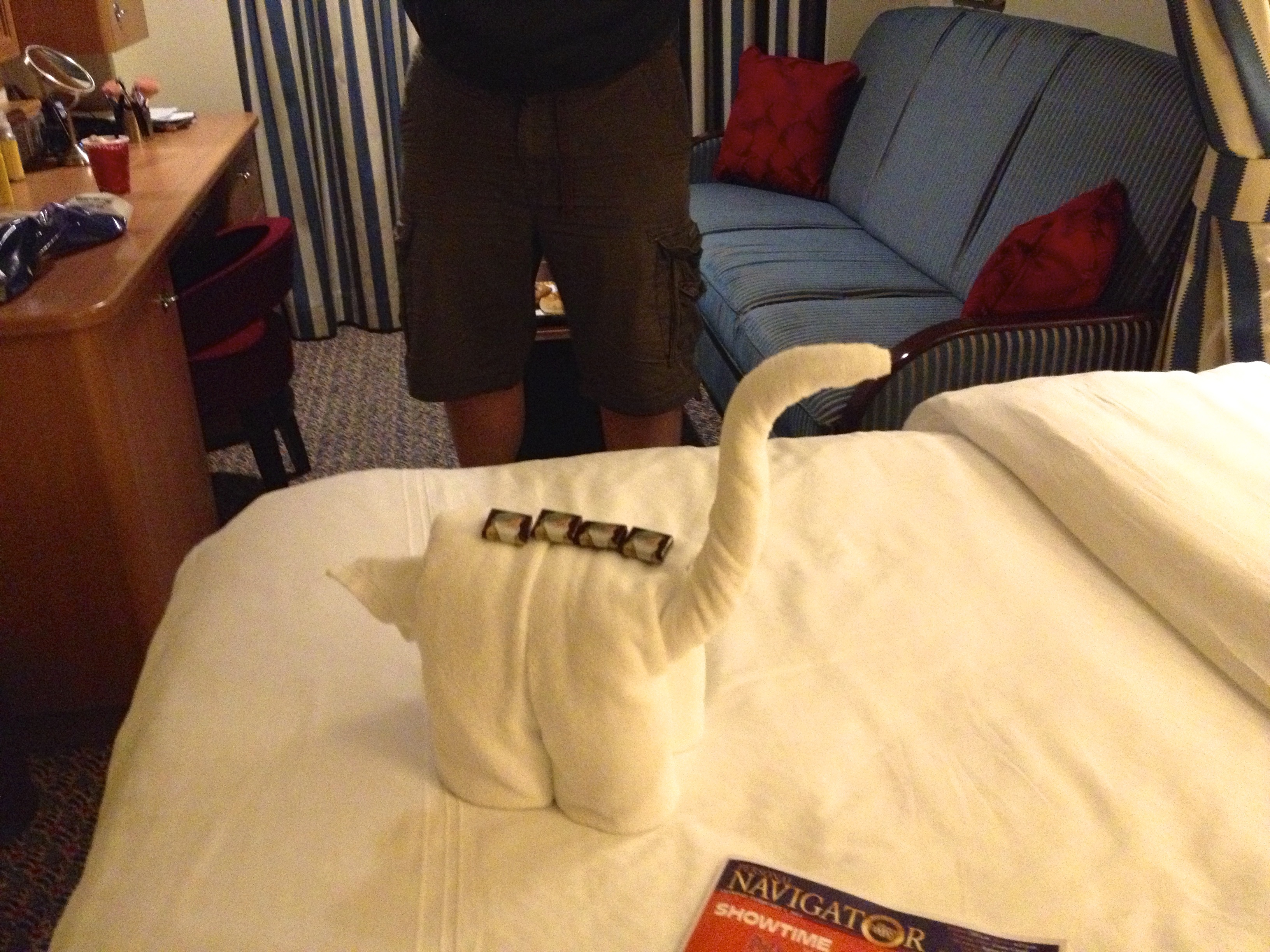 We went back to the cabin and changed clothes then walked around the upper decks a bit, just to check out the ship. Then we went shopping in the onboard shops for a magnet (we always buy a magnet for each cruise), and presents for CSP’s mom for taking care of our pugs and house while we were gone. Then it was nap time.