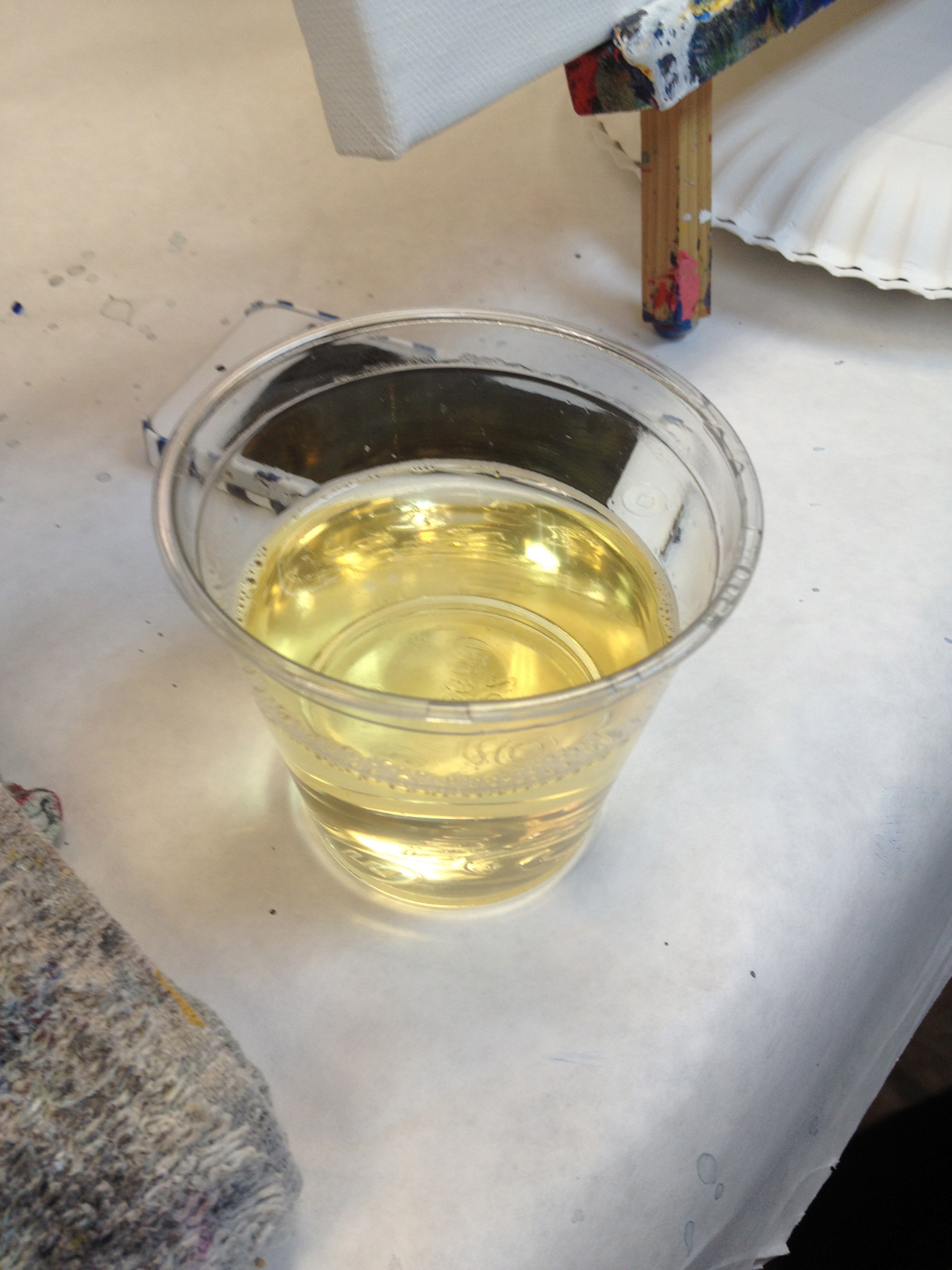 You go in and they have a blank canvas, cup with water and the brushes you’ll need, a towel (for wiping brushes) and aprons.IMG_3516