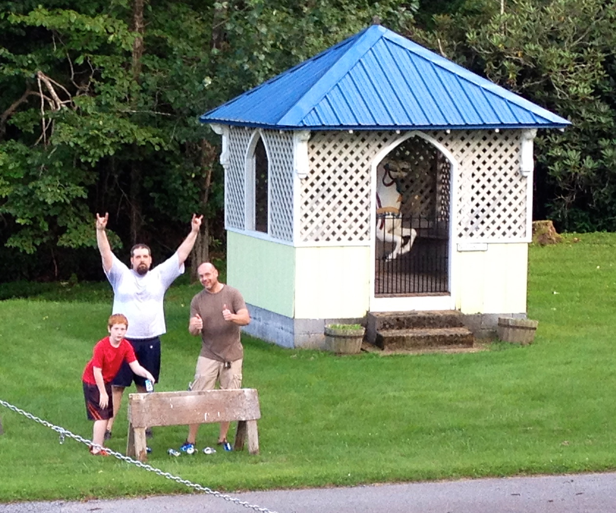 That’s my Peach Nehi CSP picked up for me at the Mast General Store. He loves getting an RC cola in the bottle. In the middle are Jacob, Marc & CSP setting up their BB gun targets. At the bottom are two little pug loafs hanging out on the porch (Kiki & Molly). For dinner Marc made us each our own custom calzone (a fun way to finish up all the leftovers from our trip!)