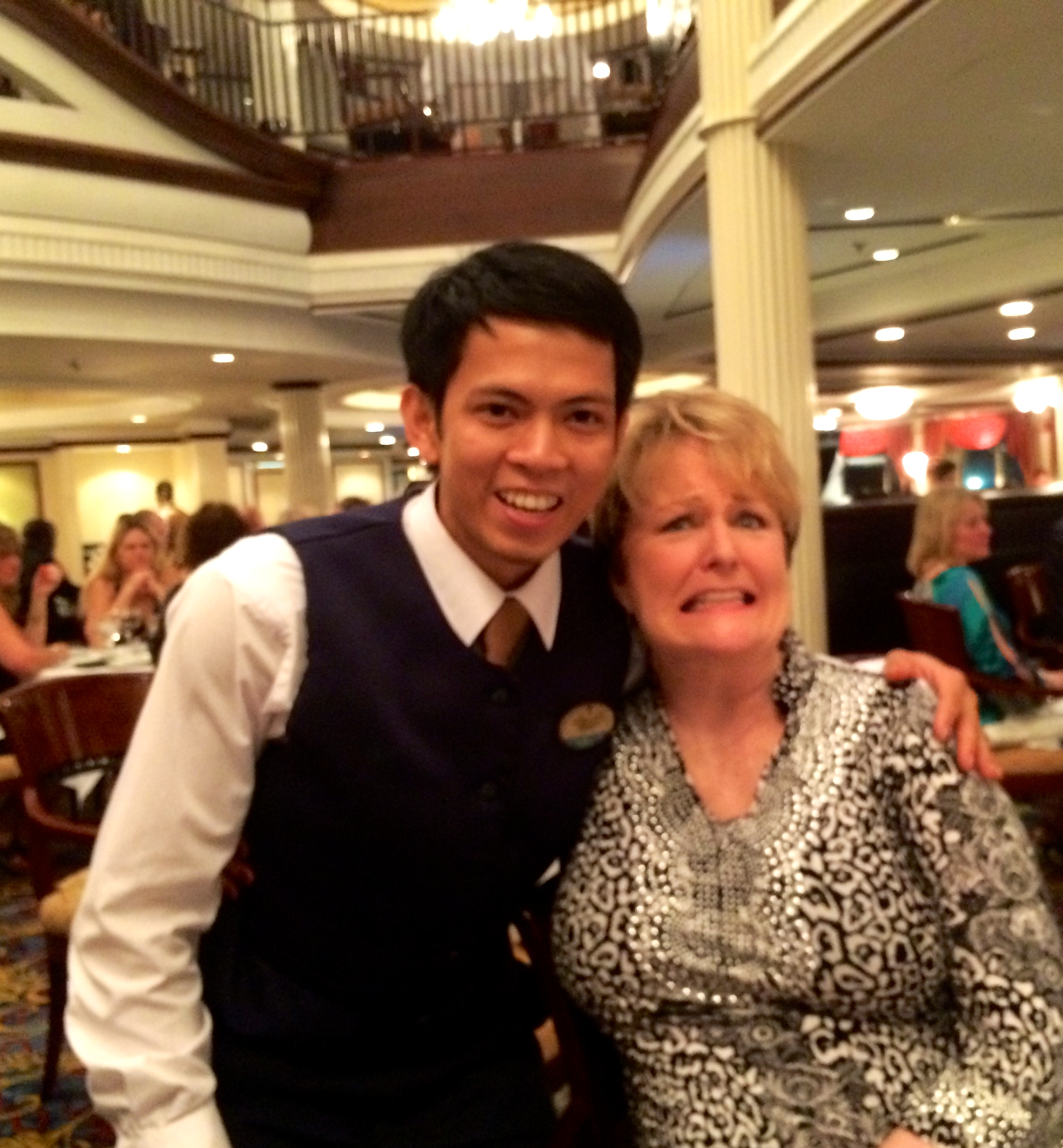 When lunch was over we went back to the cabin for our daily nap. It was still raining by the way. By now we’d docked at Nassau. Momo and Sara decided to go with Chika and some of his friends to Señor Frogs. I’m too old for that nonsense so Gigi and I took a nap! We woke up and were getting dressed for dinner while enjoying some wine when the girls returned. I’d show you a picture from the ridiculousness that took place once the girls came back, but I’d get in serious trouble. Let’s just say that the cocktail foreshadowing I told you about in the first post was coming to fruition! Gigi and I were enjoying some wine but not nearly as much as Sara and Morgan enjoyed Señor Frog’s cocktails!