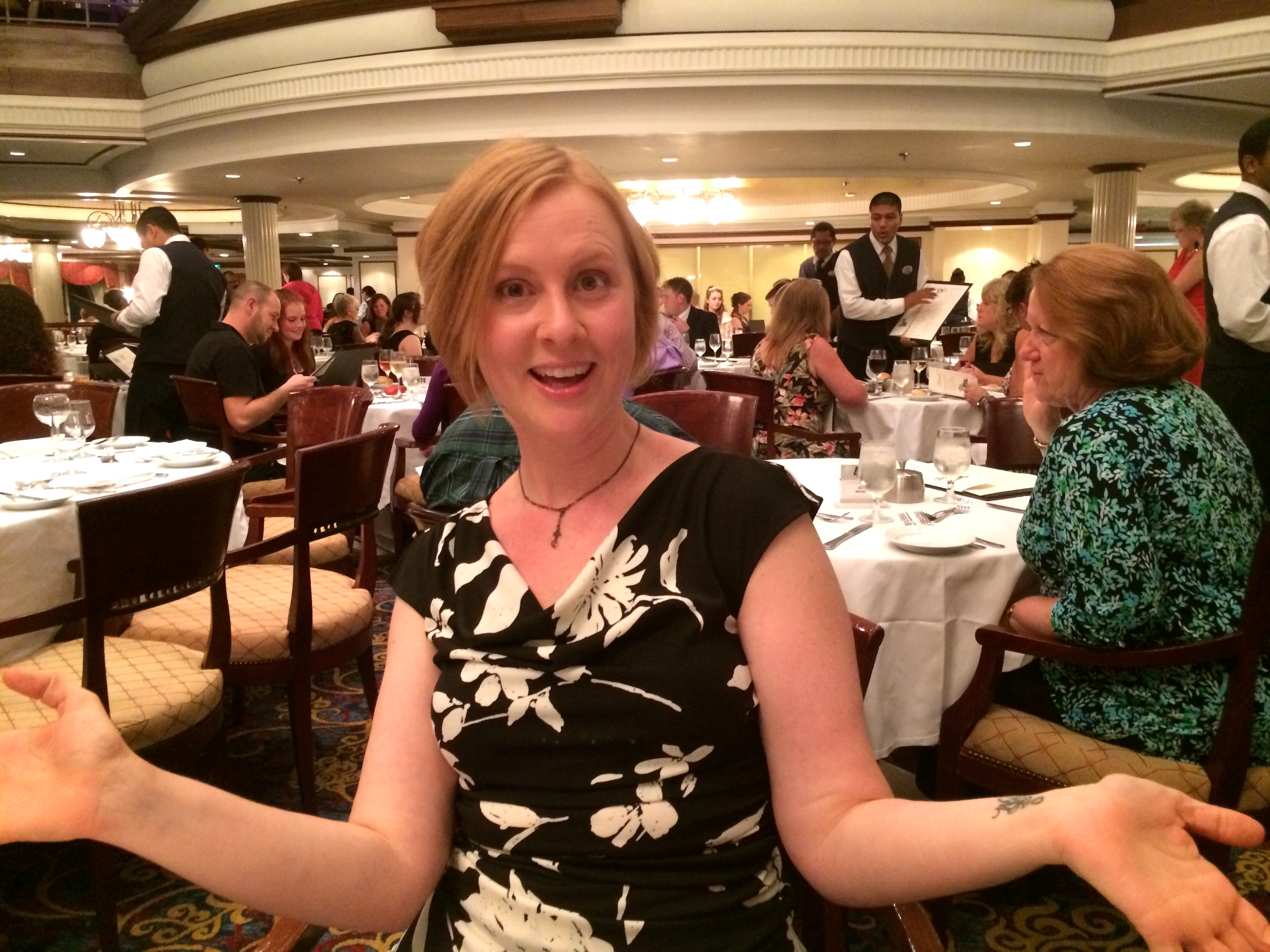 It has different names on different cruise lines (Disney is Match Your Mate) but the concept is the same and it is ALWAYS hilarious! People are willing to do anything for a gift basket! Here we are waiting for the show to start.