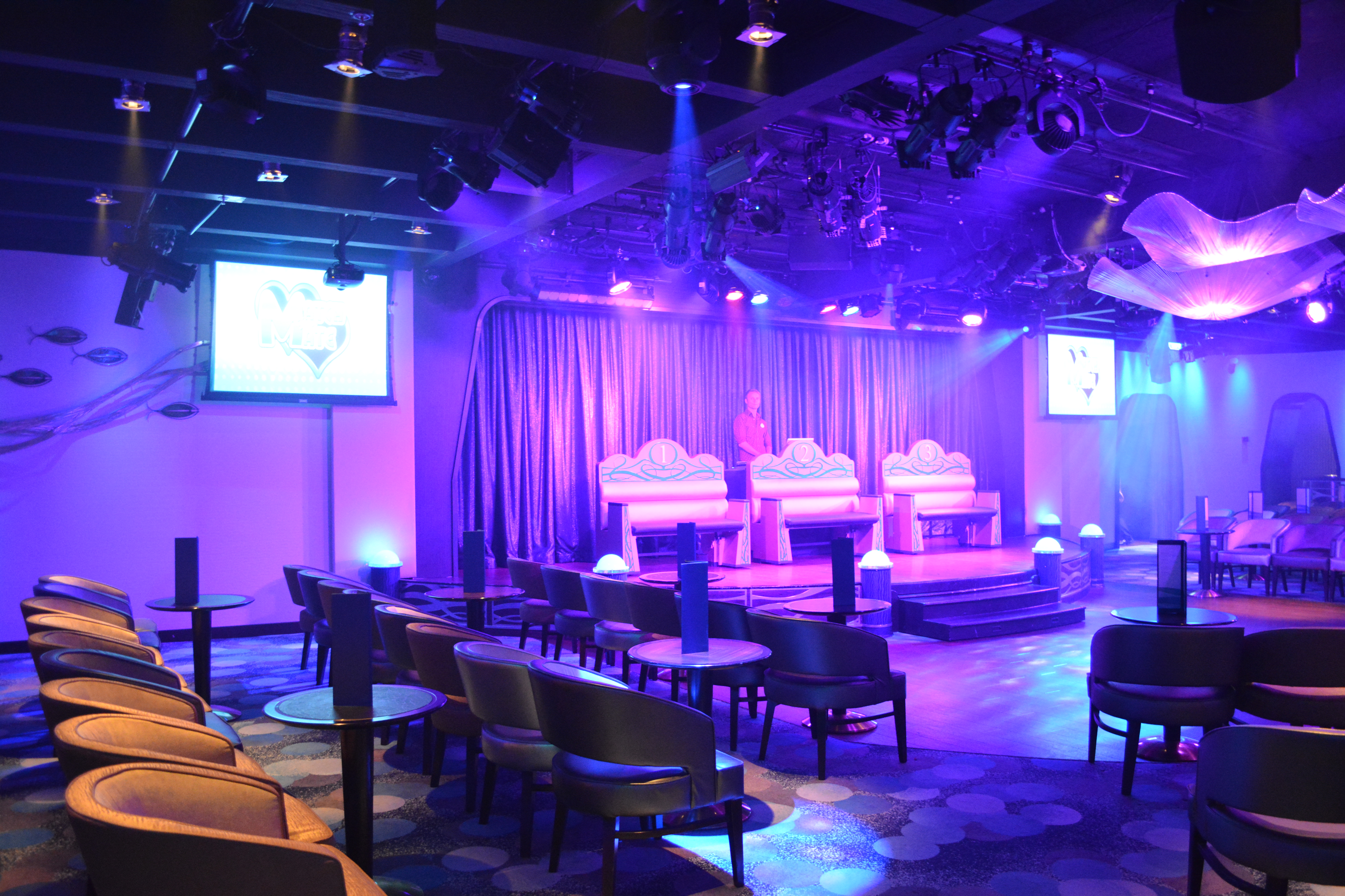We went to Fathoms Lounge for Match Your Mate. I love this “game show”. It’s like a Disney version of the Newlywed Game but with a couple who’s just married, one who’s been married the longest in the room, and one in between. It was great fun! Fathoms is a cool themed lounge