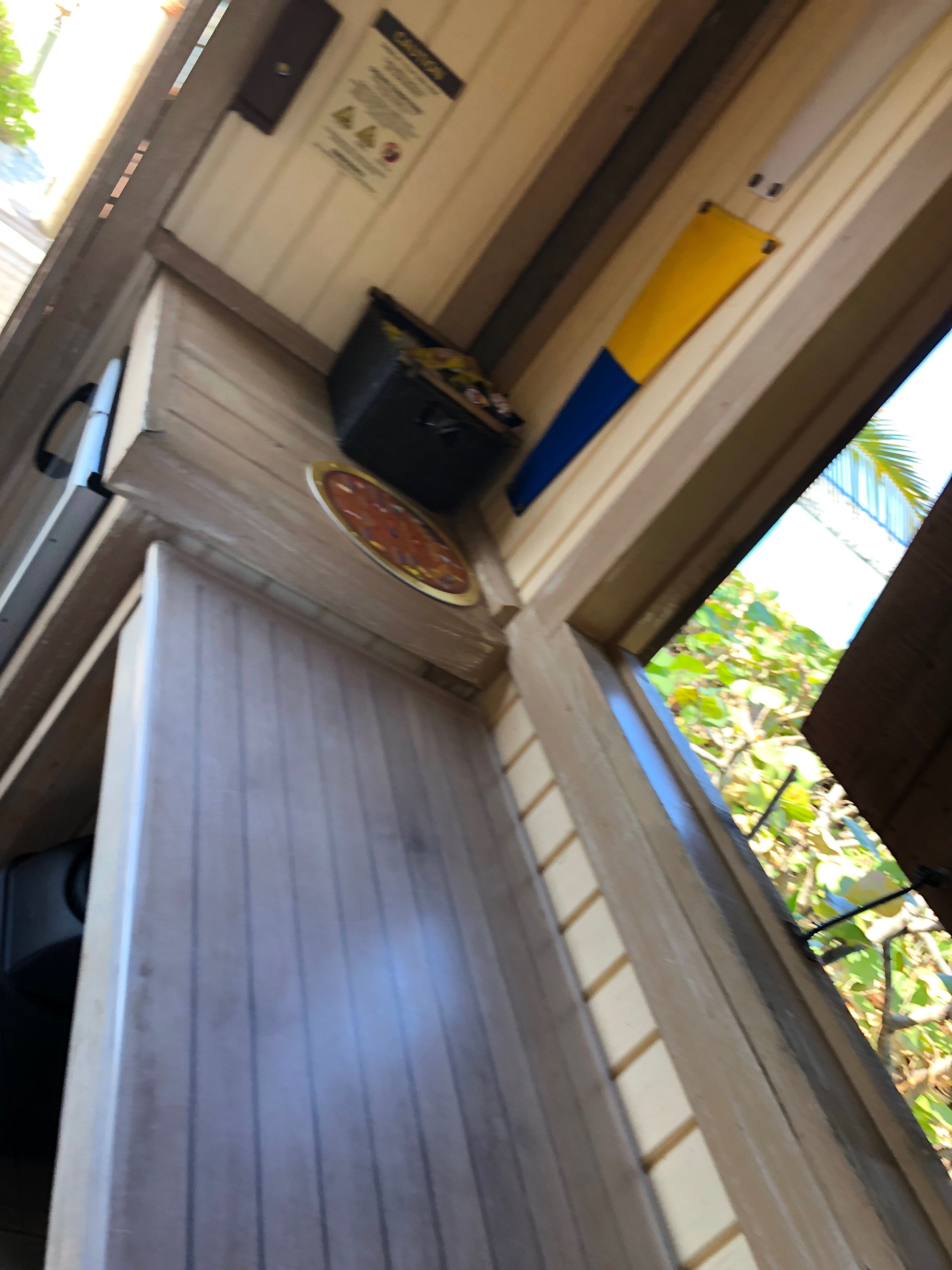 Walk down the stairs and to the right is the shower and to the left is the hammock.