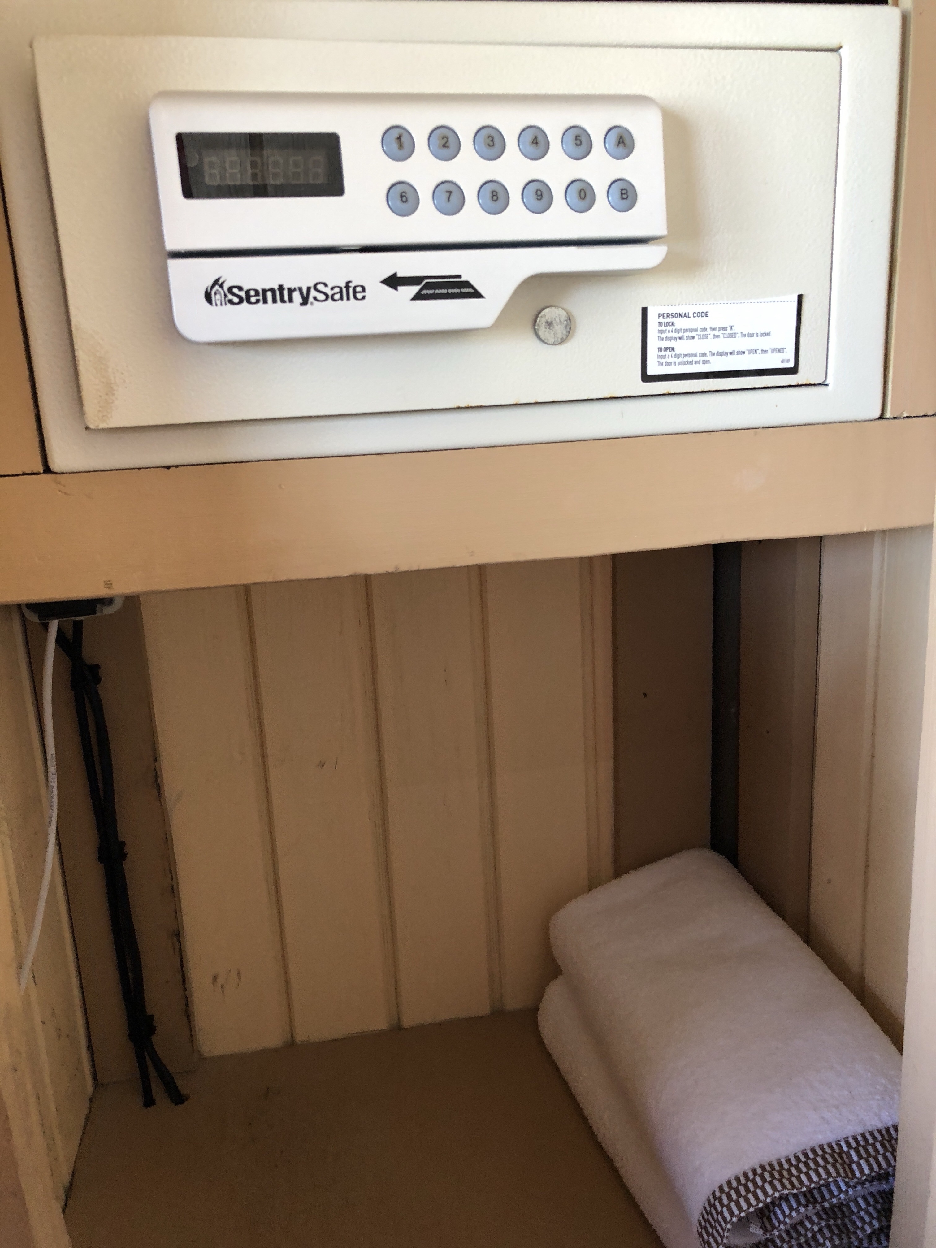When you walk in there’s a closet immediately to your right that holds a safe and some towels.