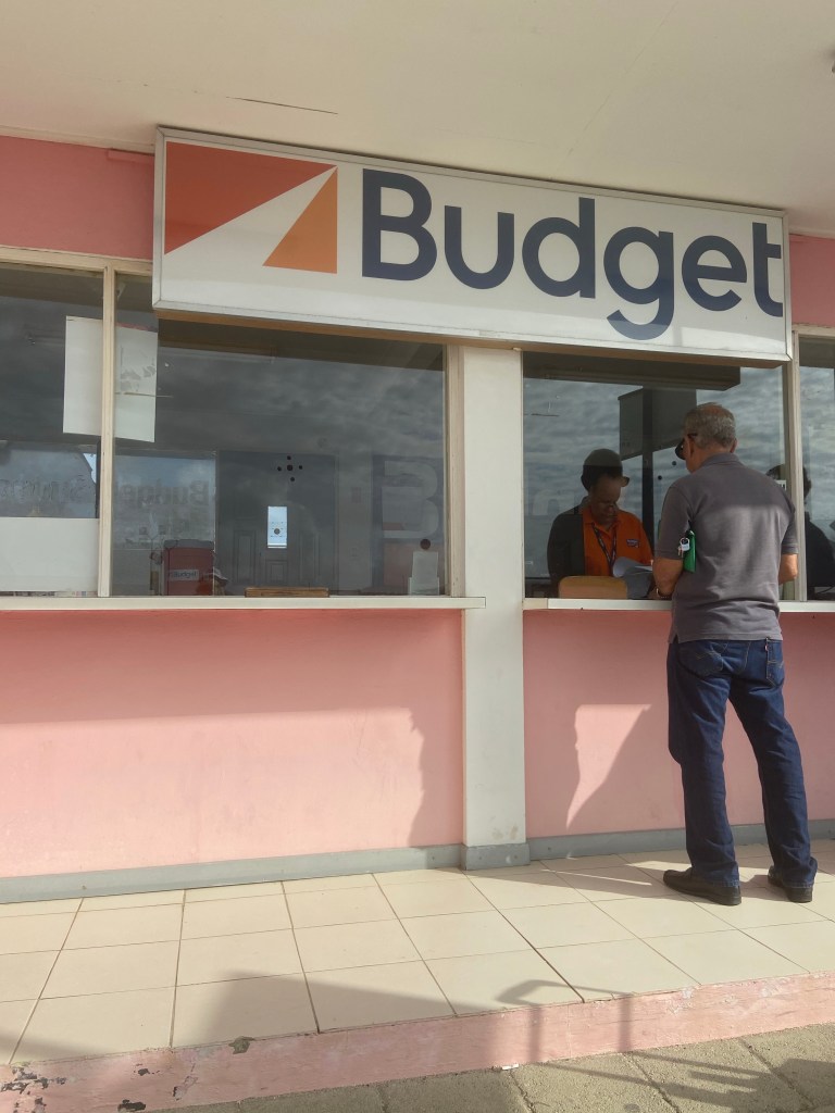 The airport there is crazy! It’s all outside! So you get off your plane and drag your luggage through sand and a parking lot to get to the car rental kiosk strip. Wild!
