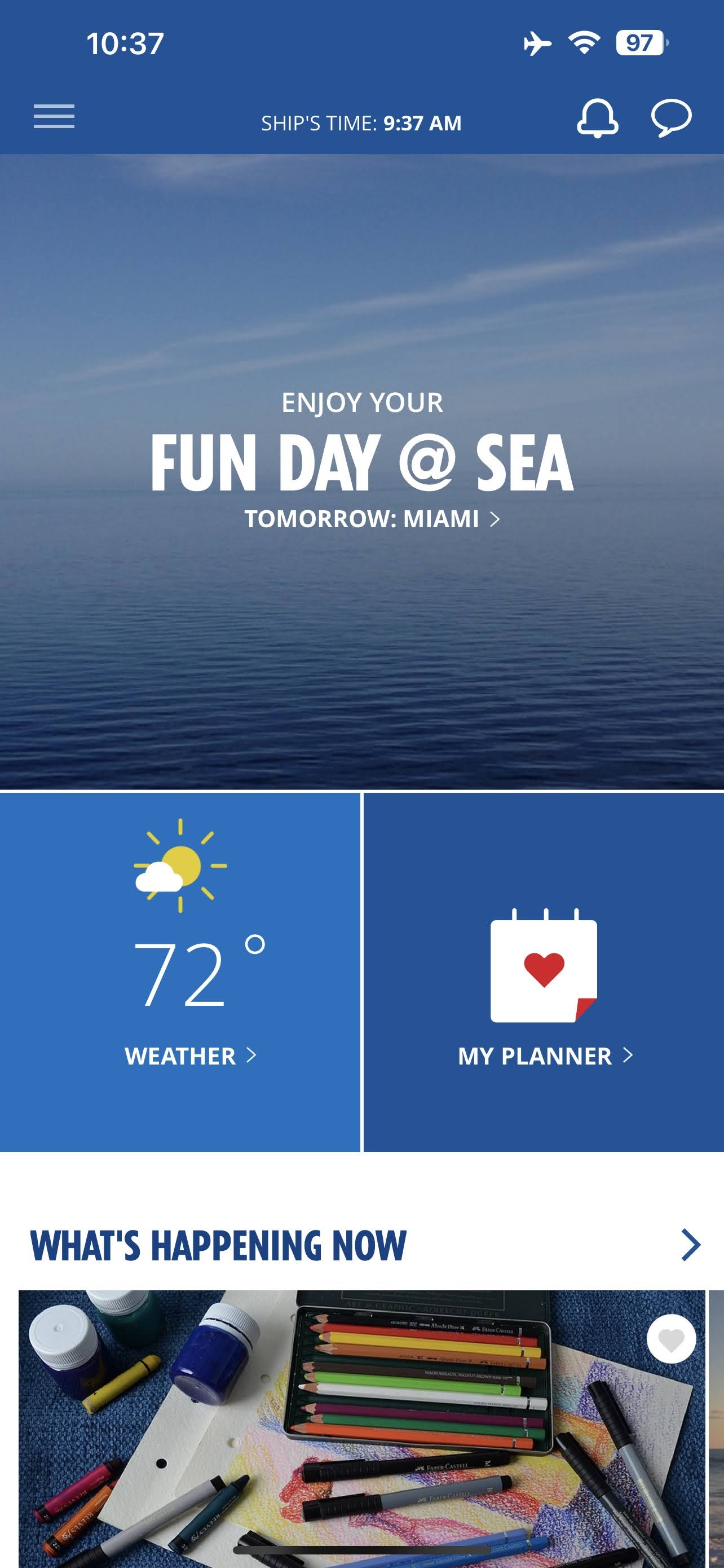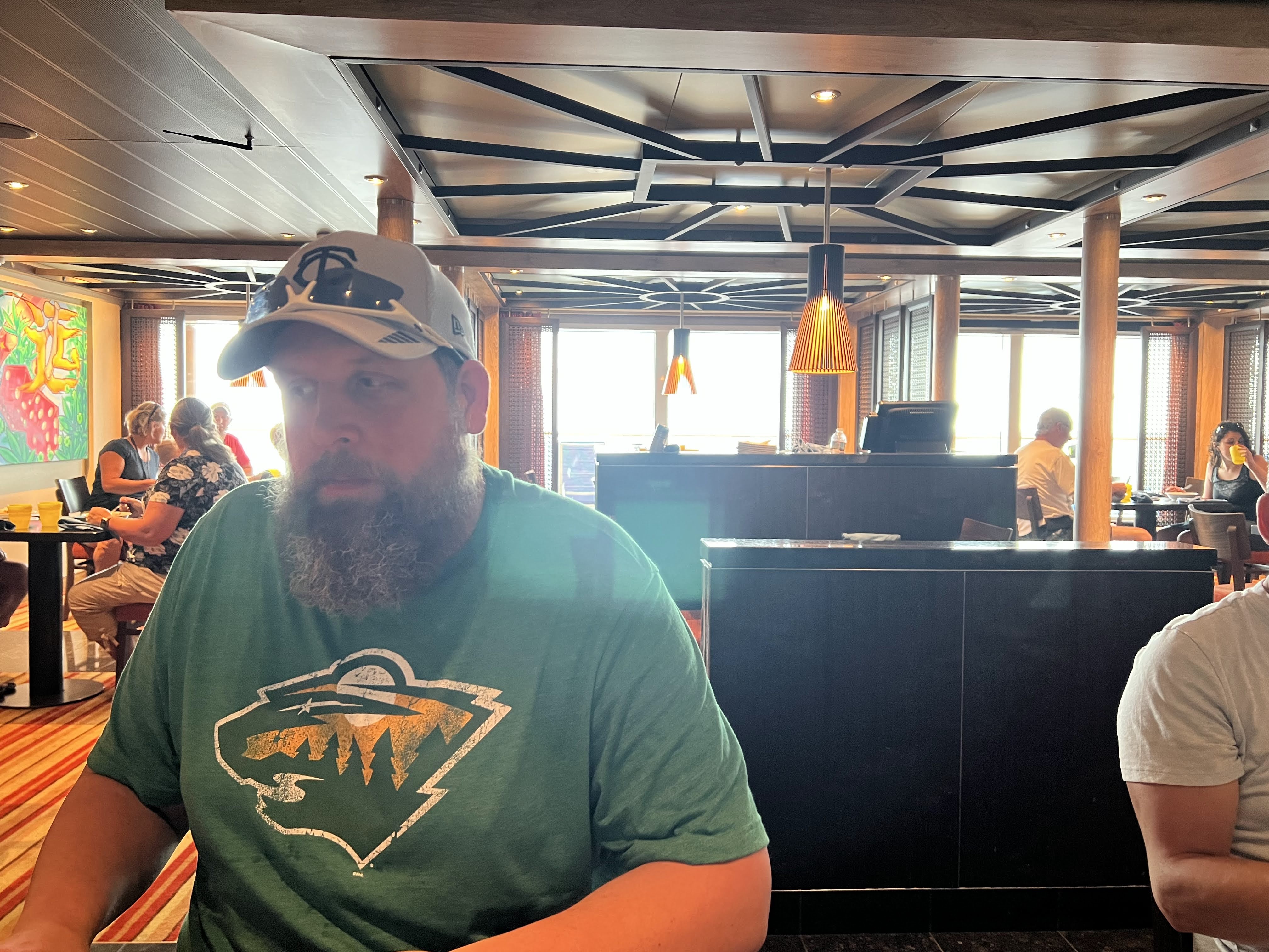 Today is another day at sea- our last full day of this cruise. We went to breakfast at Meridian. It’s a v cool restaurant. Two levels.