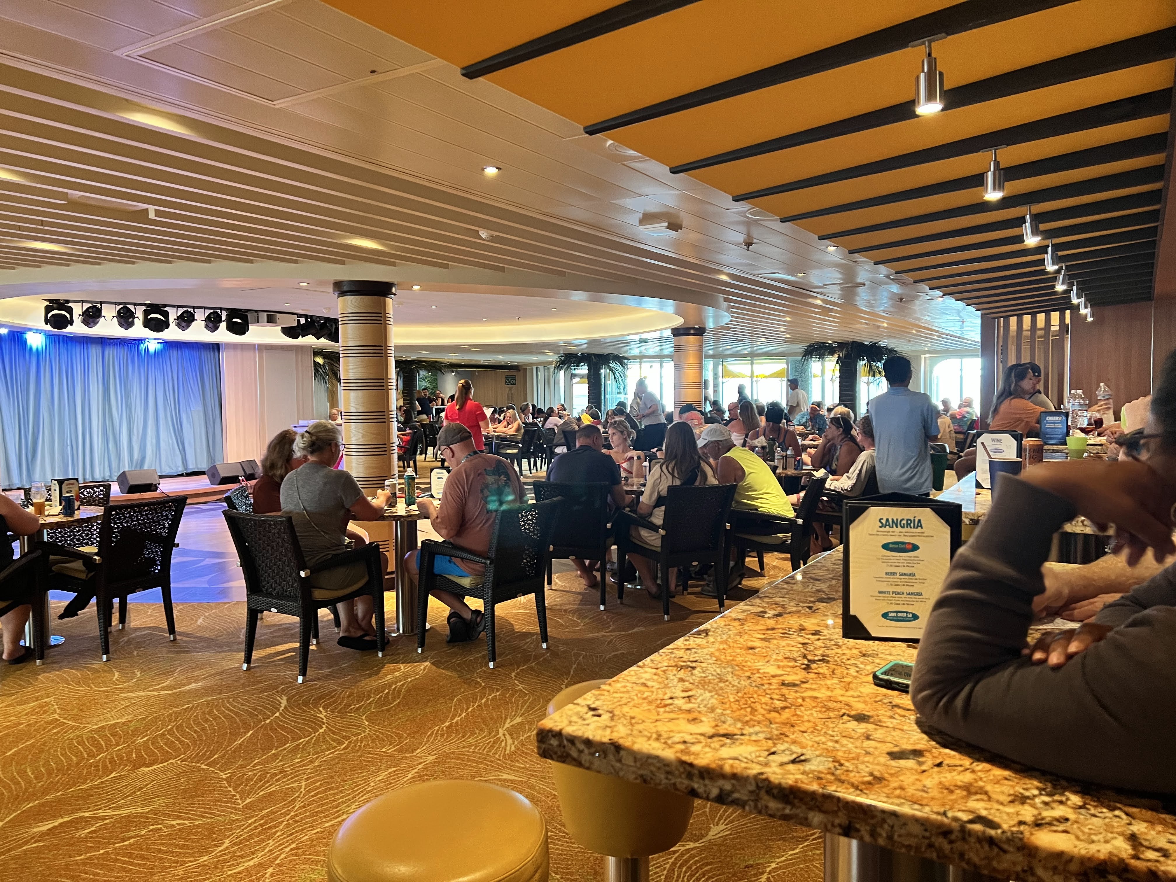 We found seats in the Ocean Plaza on deck 5 for General Knowledge Trivia.