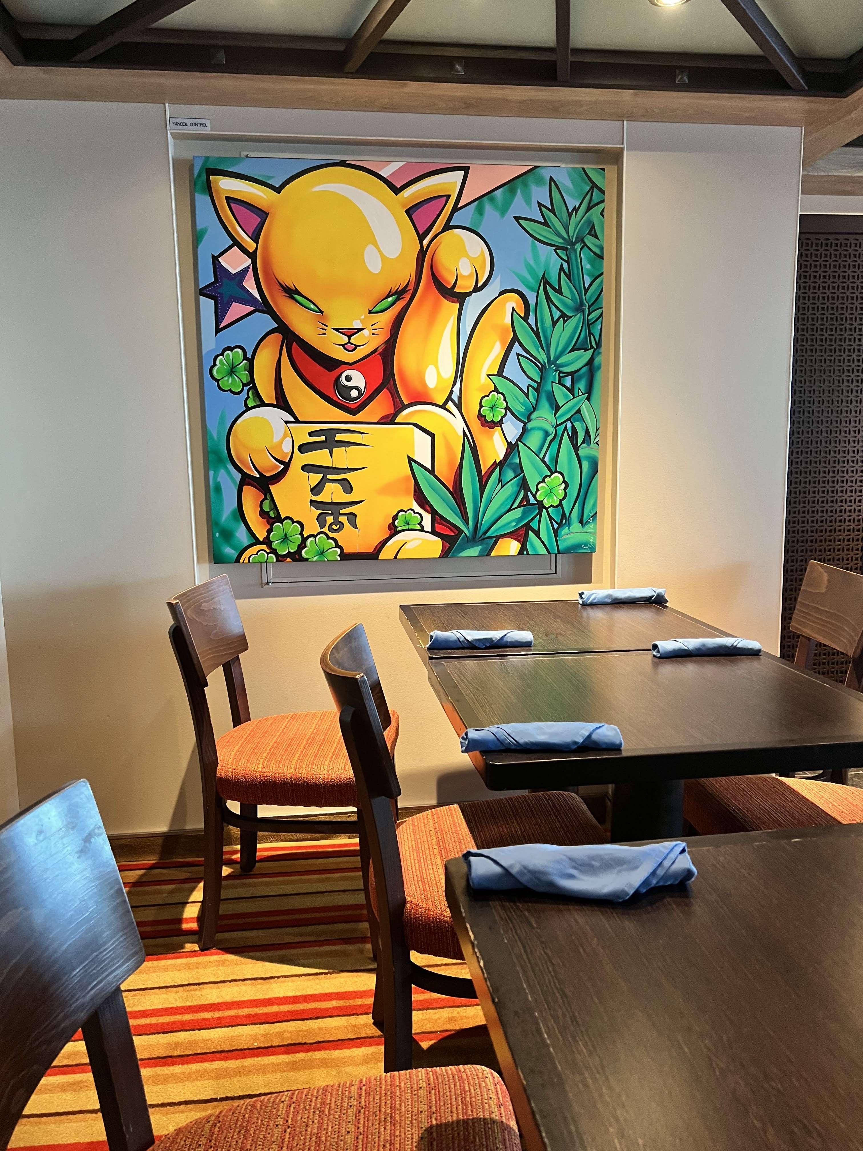 For lunch we went to JiJi Mongolian Wok. While we were seated at our table we could hear what sounded like a thundering herd above us. I pulled up the ship map on my phone and we found out that JiJi is directly under the basketball court!