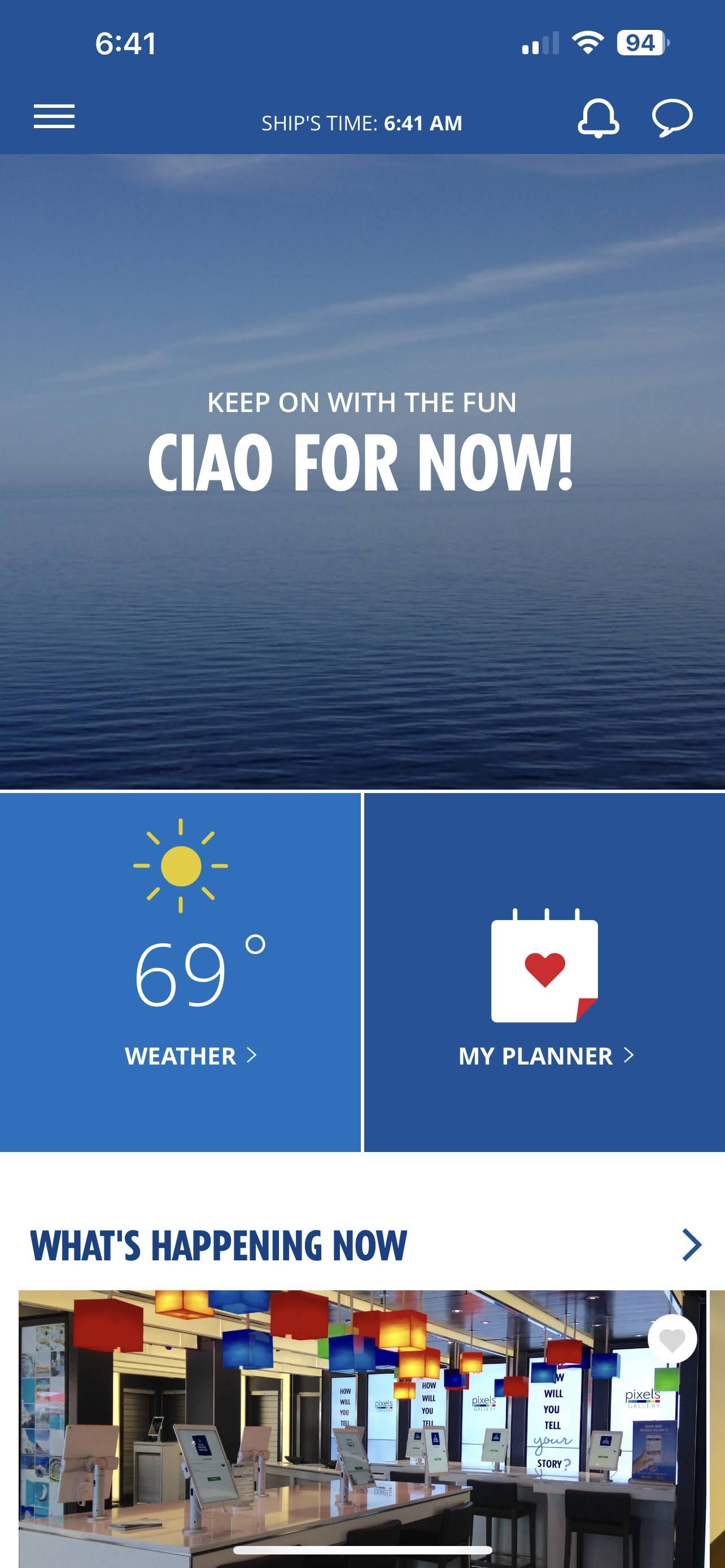 We were seated on deck 5 by 7:30 am, listening for the announcement. 7:45 came and went. Then 8. 8:15. 8:30. 8:45. We are restless and thirsty and ready to go!!! NO announcement. Finally at 9 am they called for Diamond, Platinum, and A4. That’s us! A4! Meanwhile my parents had a different muster station and were camped out elsewhere on the ship. We took the elevator down to deck 3 to debark, but everything was shut off- doors closed. One of the guys in our elevator group opened one of the closed doors and we made our way through a restaurant to the debarkation area on deck 3, hauling all our luggage btw. As soon as we reached the open doors to debark the Carnival peeps shut down one of the debarkation lines! So we all had to file out in one line. And let me tell you, there were a LOT more people in that lobby than just Diamond, Platinum, or A4! It felt like all of humanity was crowded into that lobby!