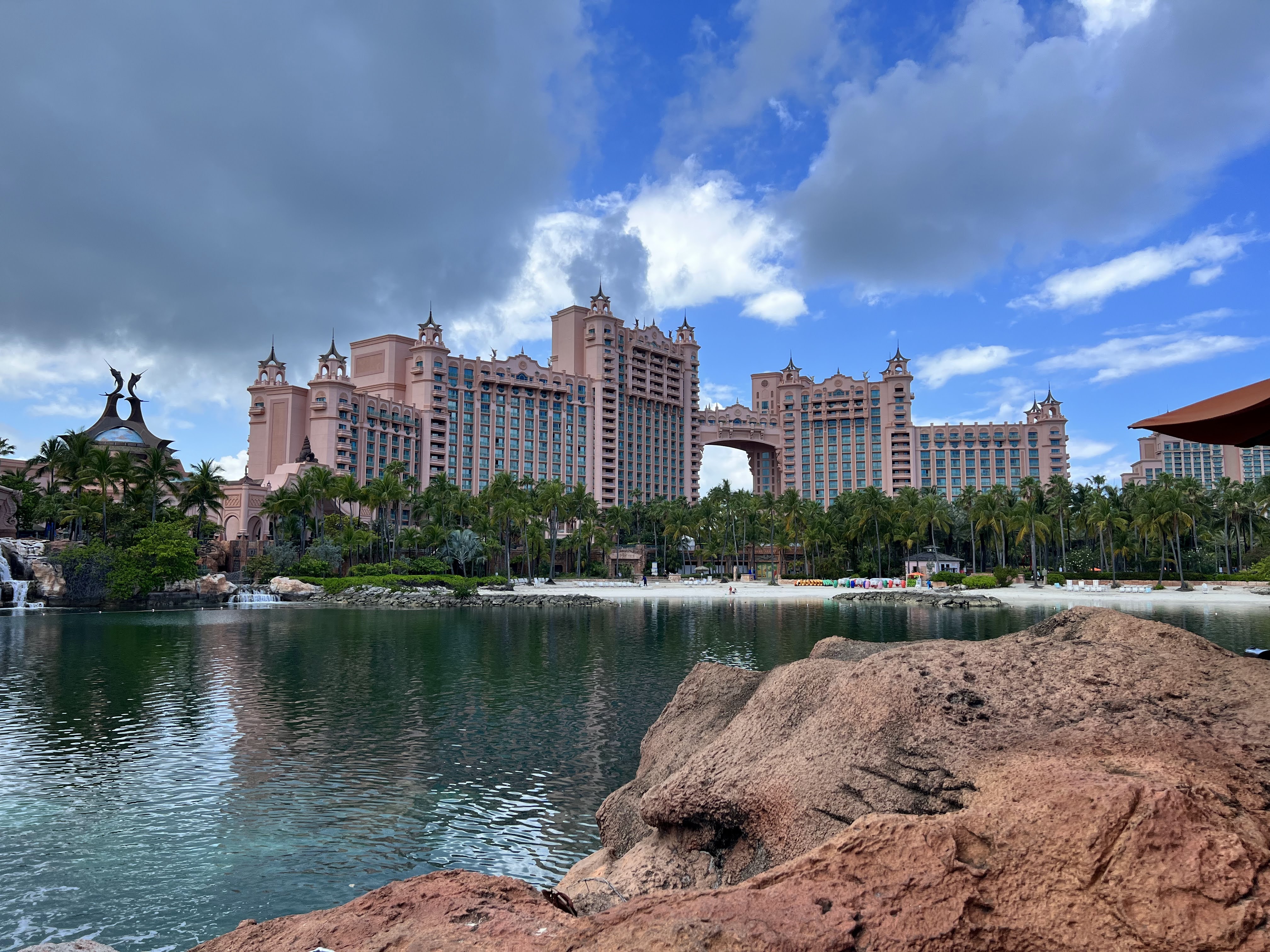 After breakfast we went back to the room to gather our stuff and change for Atlantis. Atlantis is a GIANT resort on Paradise Island in the Bahamas. Usually when we stop at Nassau, CSP & I stay on the ship because we’ve been to Nassau a few times, unless there’s a particular excursion we’ve signed up for. But this trip we had MIL along and she’s never been so we decided to go to Atlantis for the day. You can buy a day pass to many resorts to enjoy their amenities even if you’re not staying there.