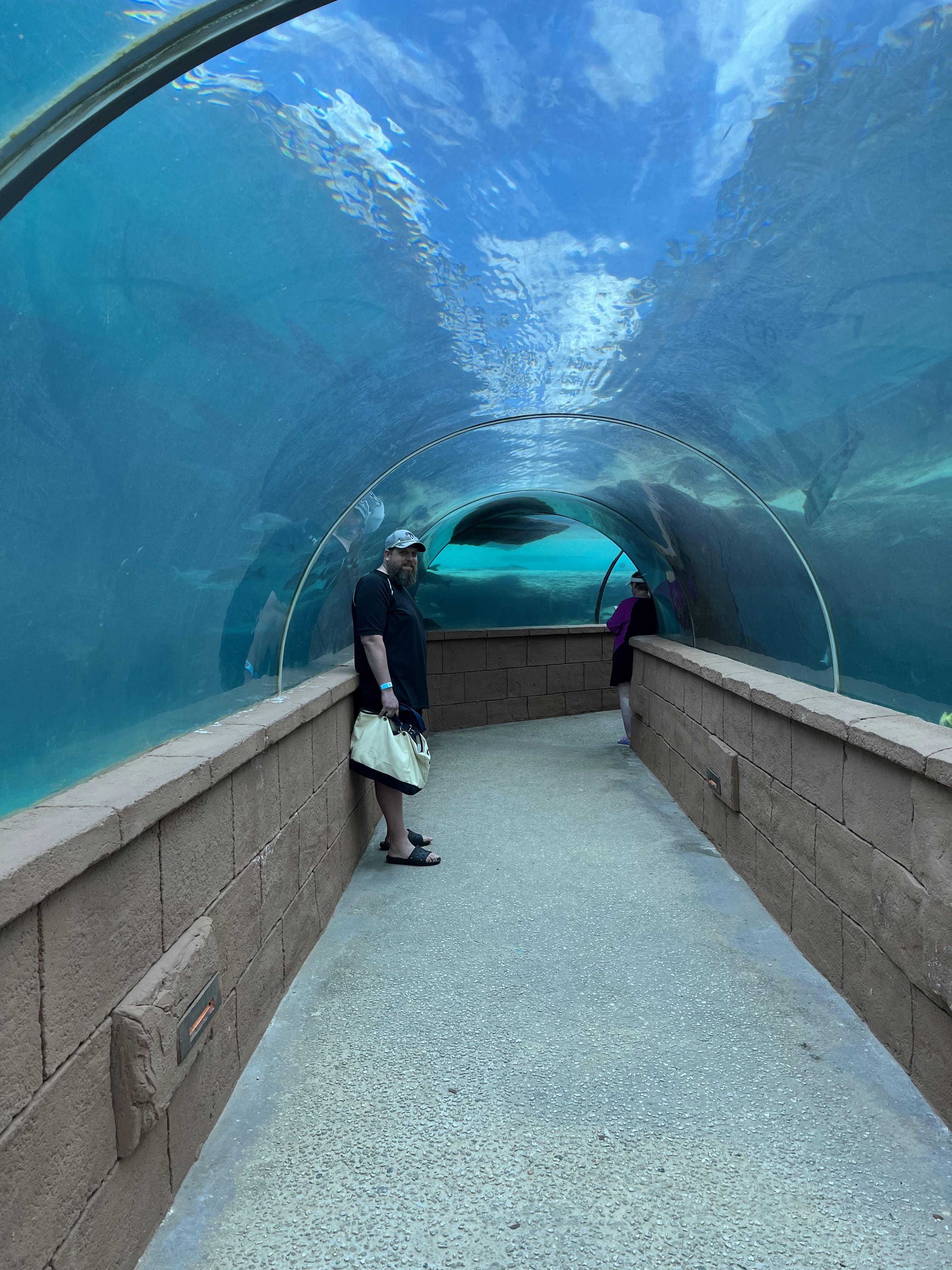 We passed the stingray exhibit. A worker was about to feed them so they were all crowding around her! I wanted to jump in the water with her!!!