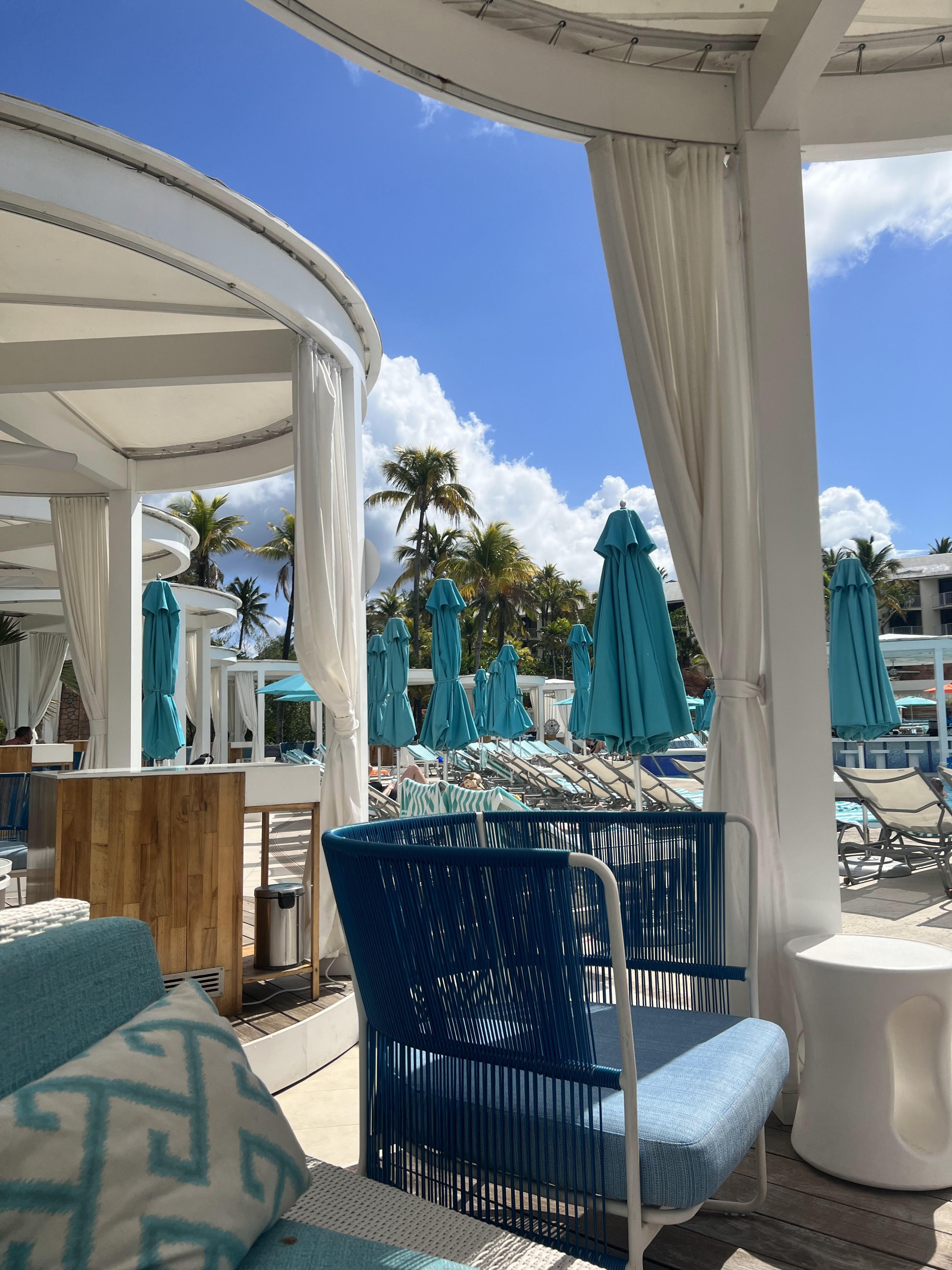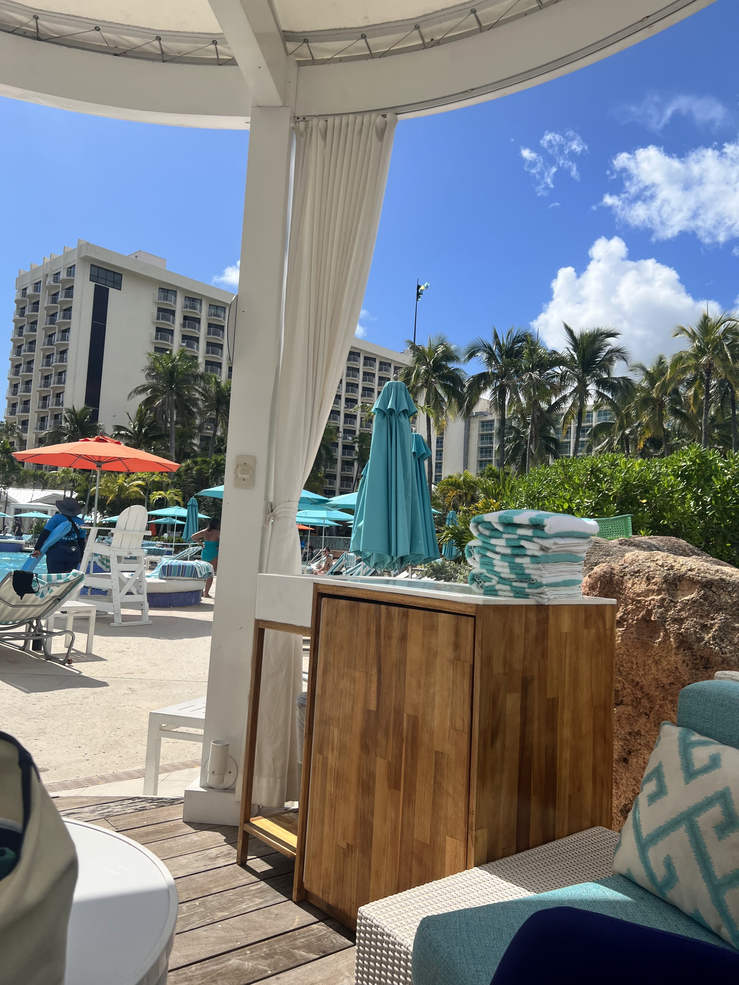 I went to the towel hut and checked in. Brickell, our cabana host (cool name), walked us to our cabana- number 45.
