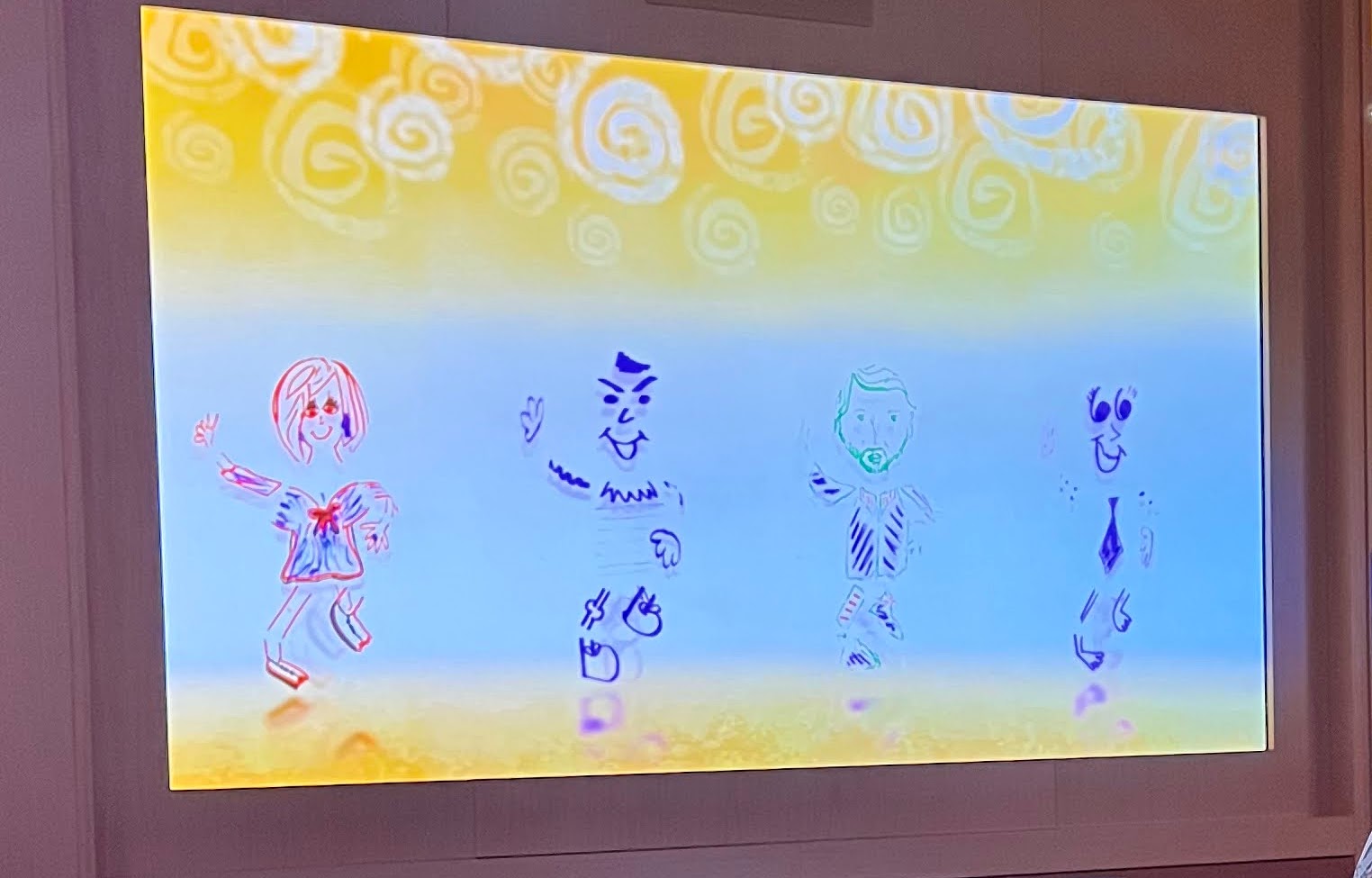 We were given the opportunity to draw characters that they animated and displayed on the nearby screens.