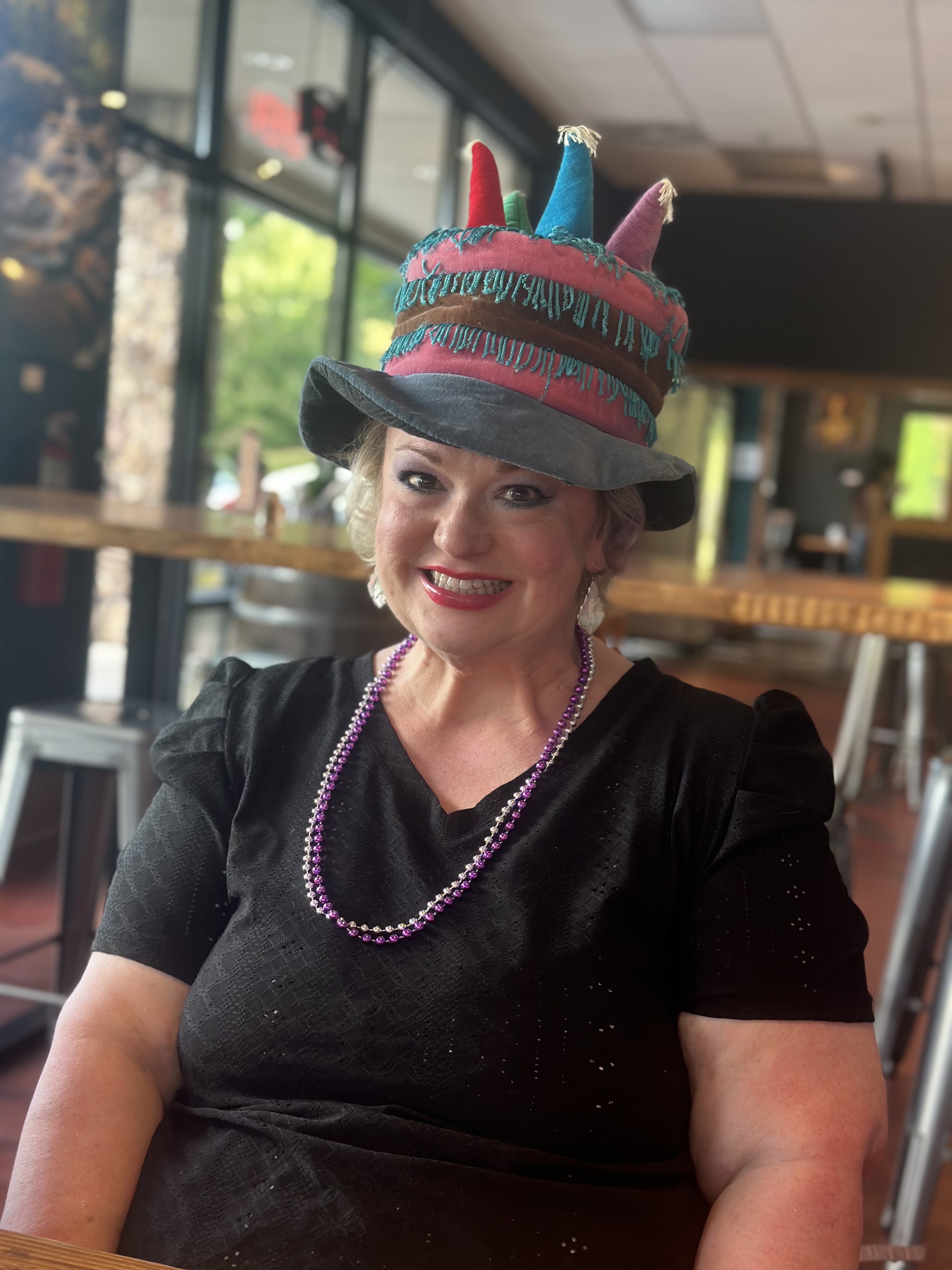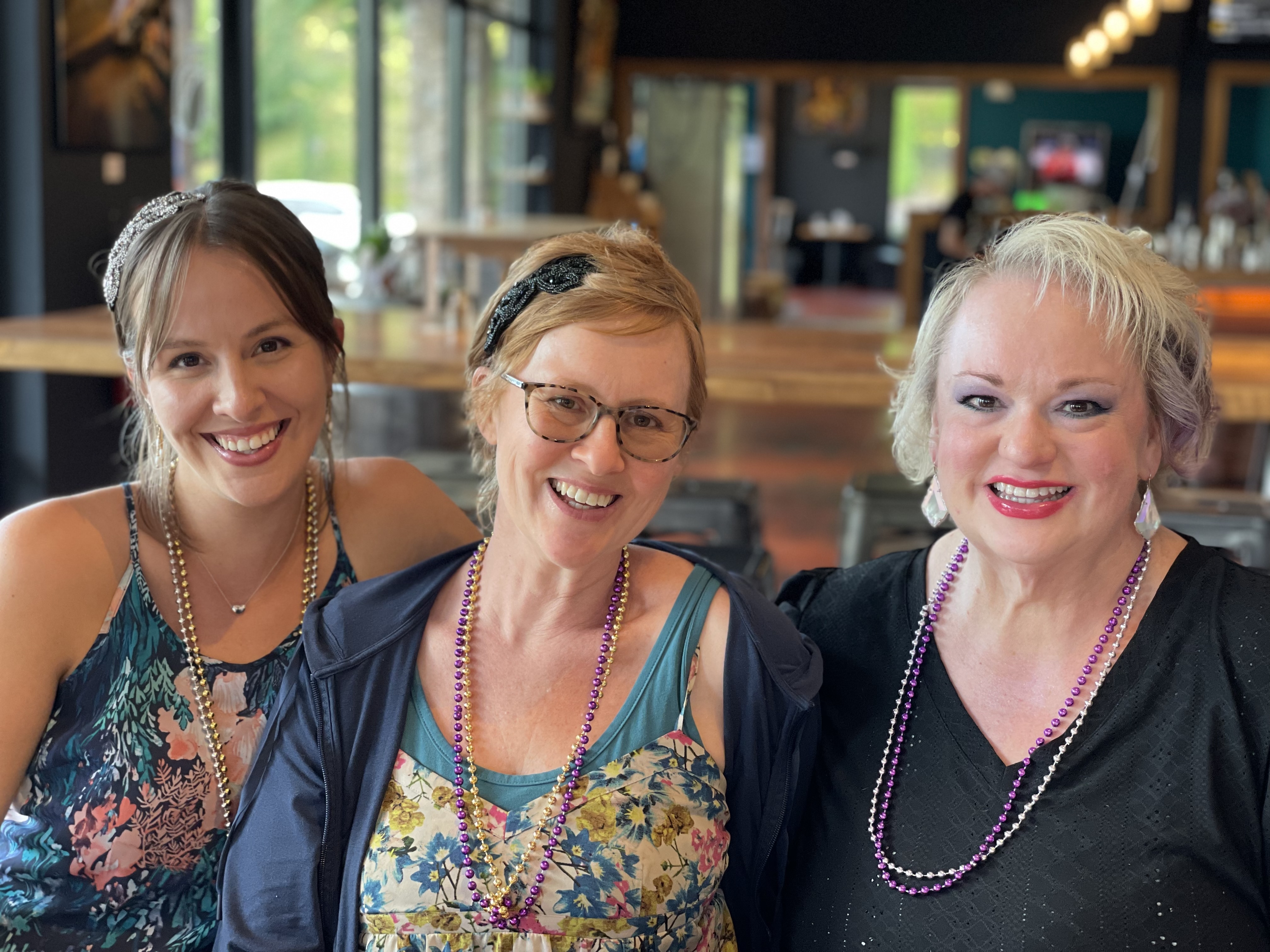 Friday afternoon two of my besties joined Sara, Morgan, Lauren, and me in Valle Crucis for my 50th birthday celebration! We got Michelle and Jennifer settled in their rooms and spent a little time on the front porch then went across the street to do some shopping at Mast General Store. We came back and had a fantastic dinner of salad and shrimp & grits!!! My favorite dinner! My sister Sara cheffed it up and it was delicious! We all wore these gorgeous 1920s inspired headbands & Mardi Gras beads.