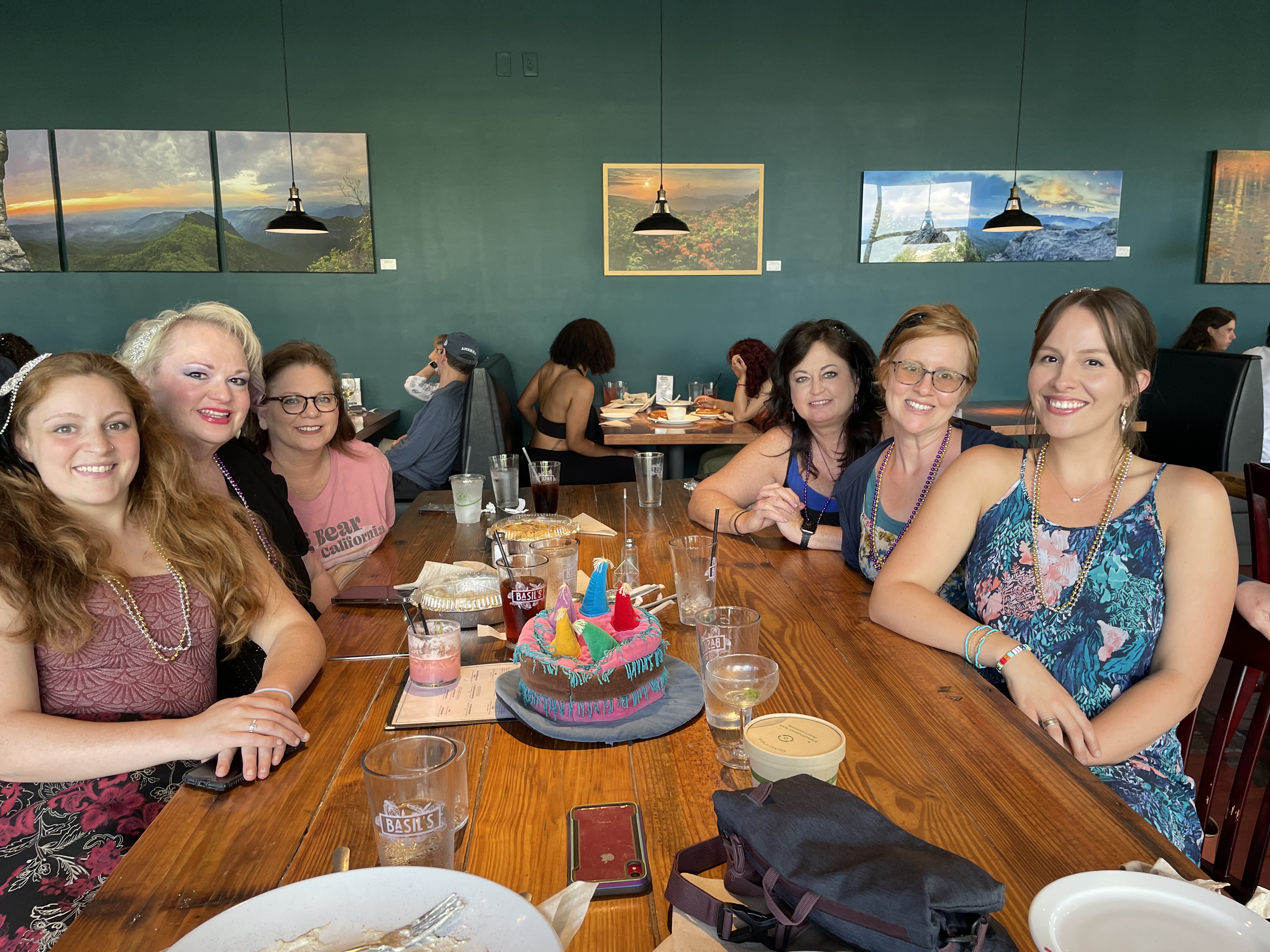 After we painted we went into town for an early dinner at Basil’s. Cocktails were half price so I enjoyed a couple! They make their own pasta at Basil’s and we each got a pasta dish for dinner- soooo good! We asked the server to snap a group picture.