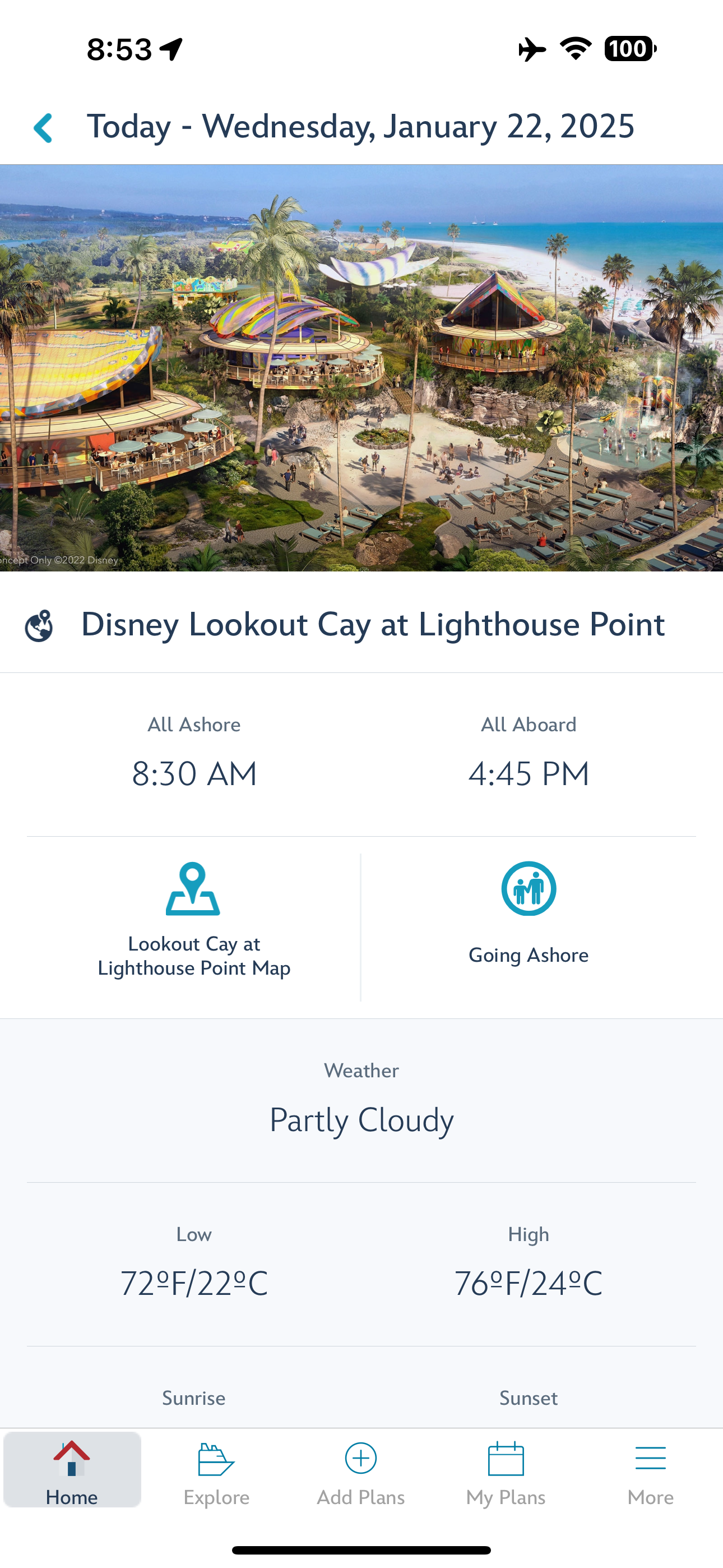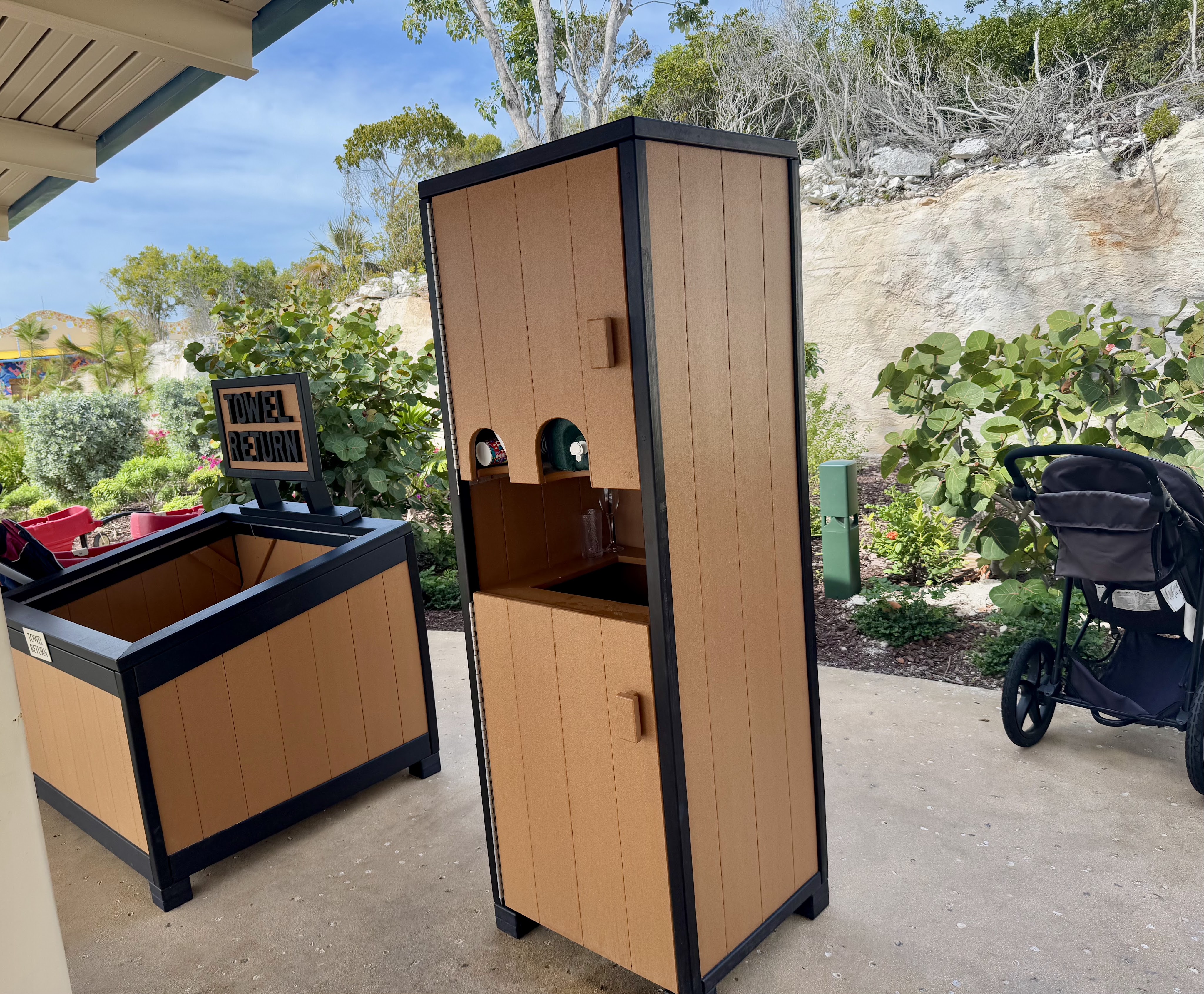 This morning we woke up early again and had breakfast at Royal Court. Then we went back to our room to change into our swimsuits and apply sunscreen. It’s another beautiful day! And today we are visiting Disney’s newest private island Lookout Cay at Lighthouse Point on the island of Eleuthera in the Bahamas! Lookout Cay opened about 8 months ago and we’ve been dying to explore it!