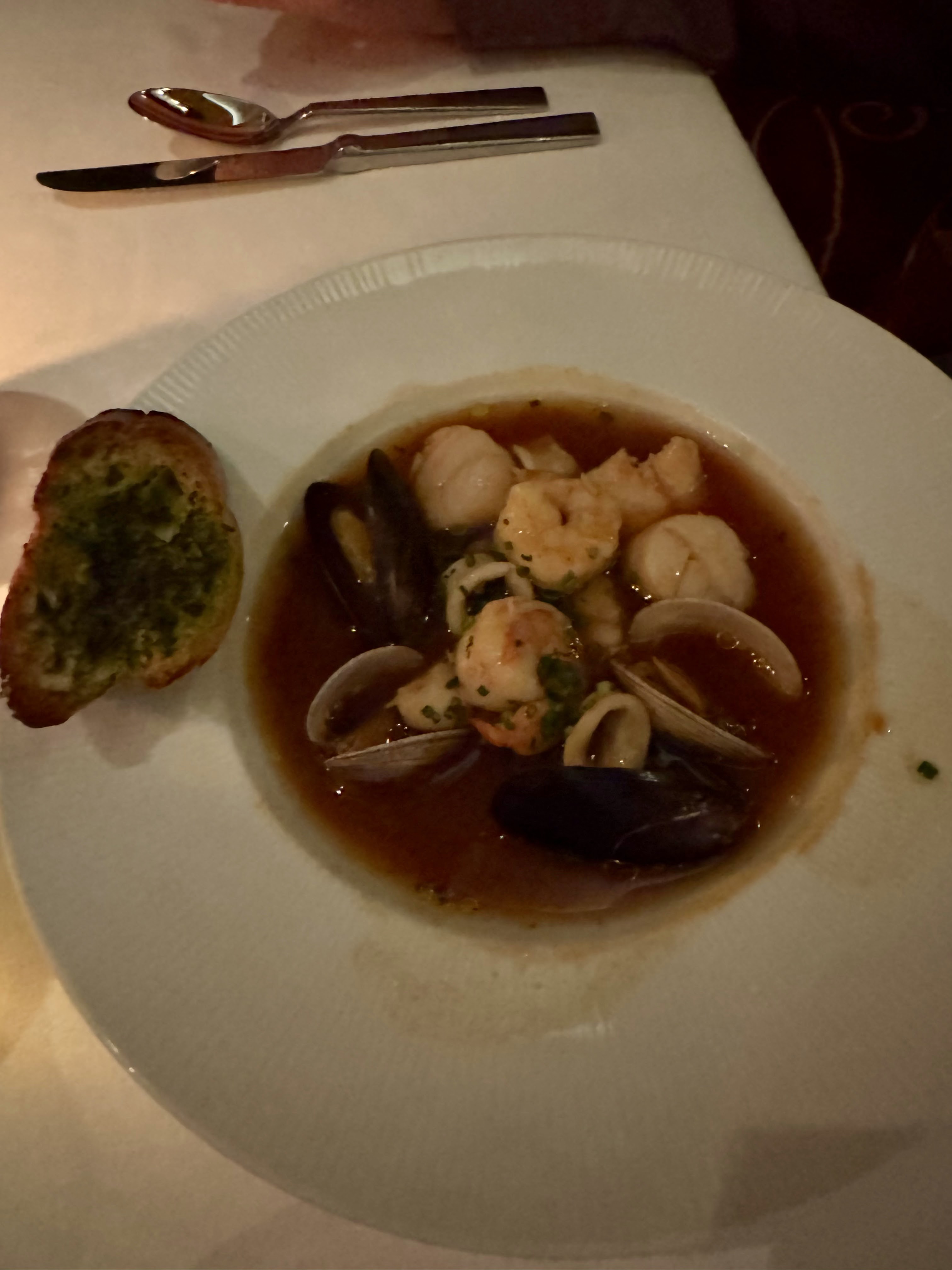 CSP had cioppino, a seafood stew. Mussels, and shrimp, and scallops, oh my!