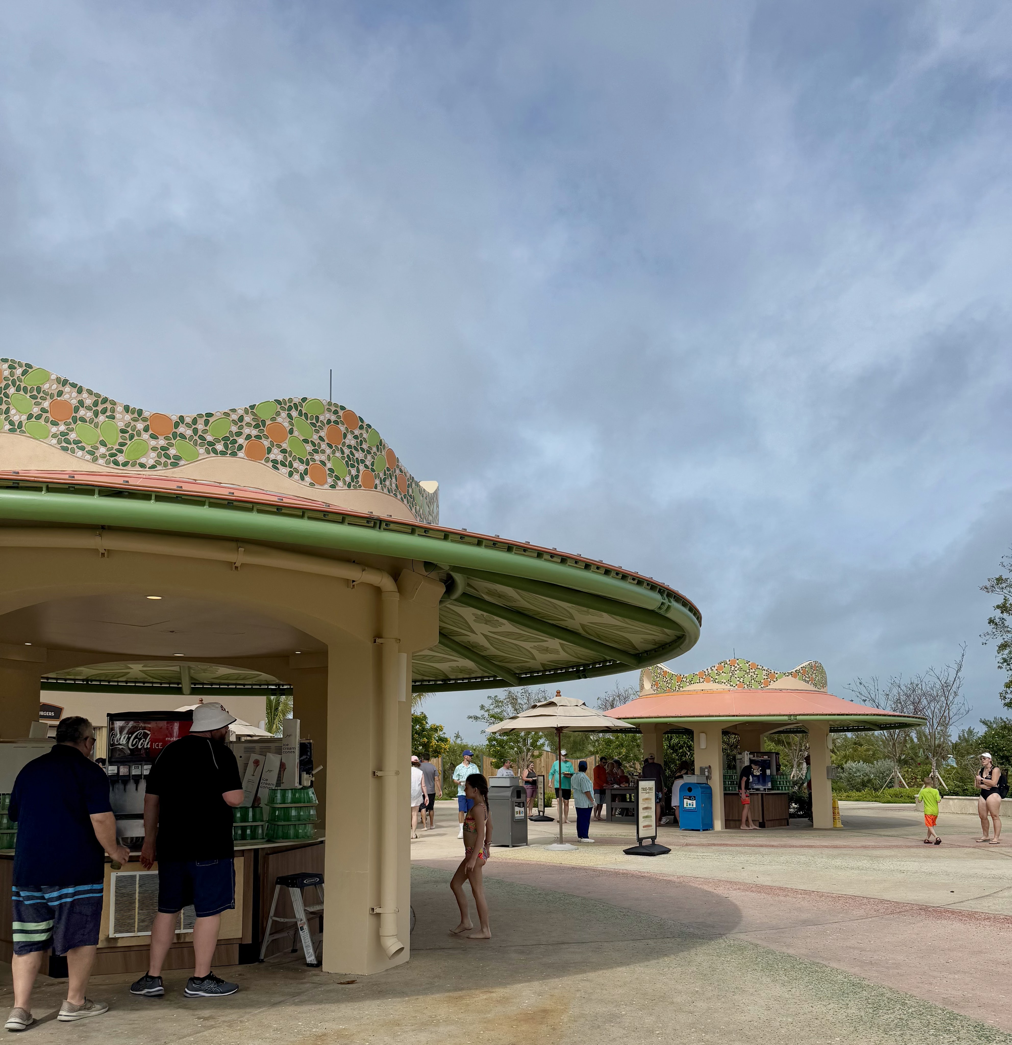 We stopped by the Serenity Bay BBQ for a quick snack. Lookout Cay has a more varied menu than Castaway Cay, which is nice. But there aren’t very many tables.