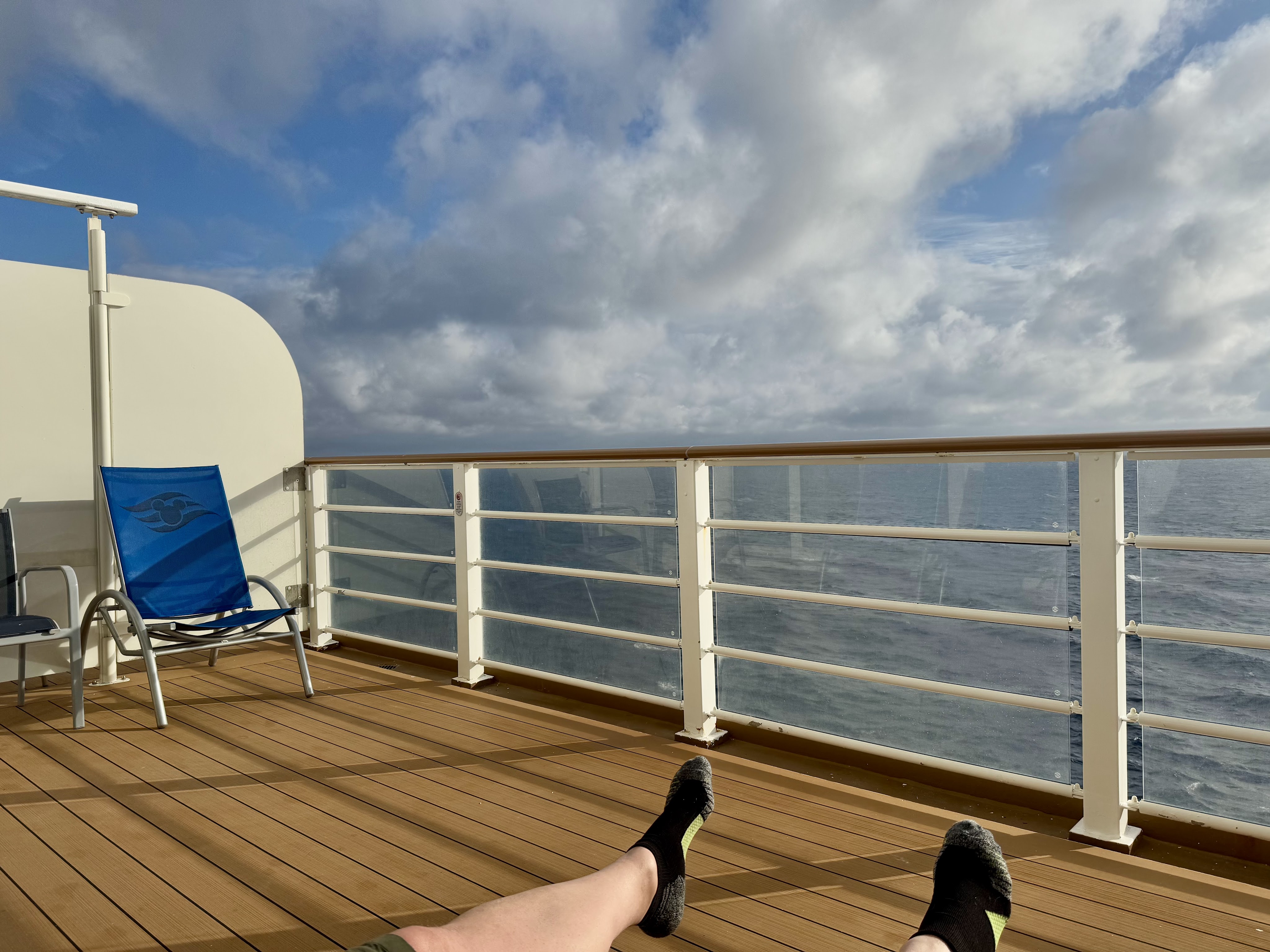 We went out to our big ol’ balcony to hang out for a while. CSP took a wee nap while I listened to my book and edited photos from our trip on my phone.