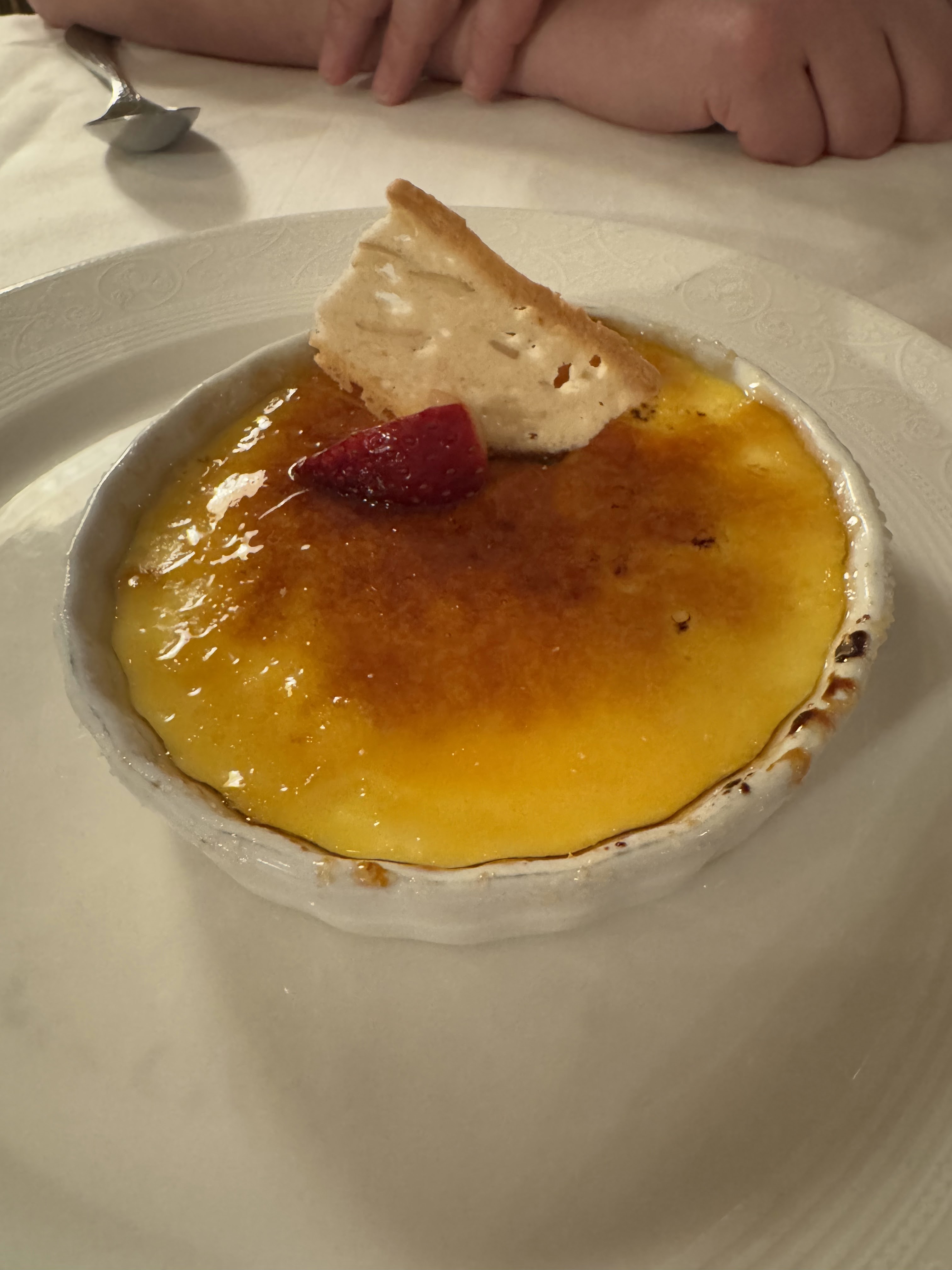 I had the panna cotta. It was topped with strawberry popping bubbles and a pistachio crumble, then a chocolate butterfly. Soooo yummy!!!