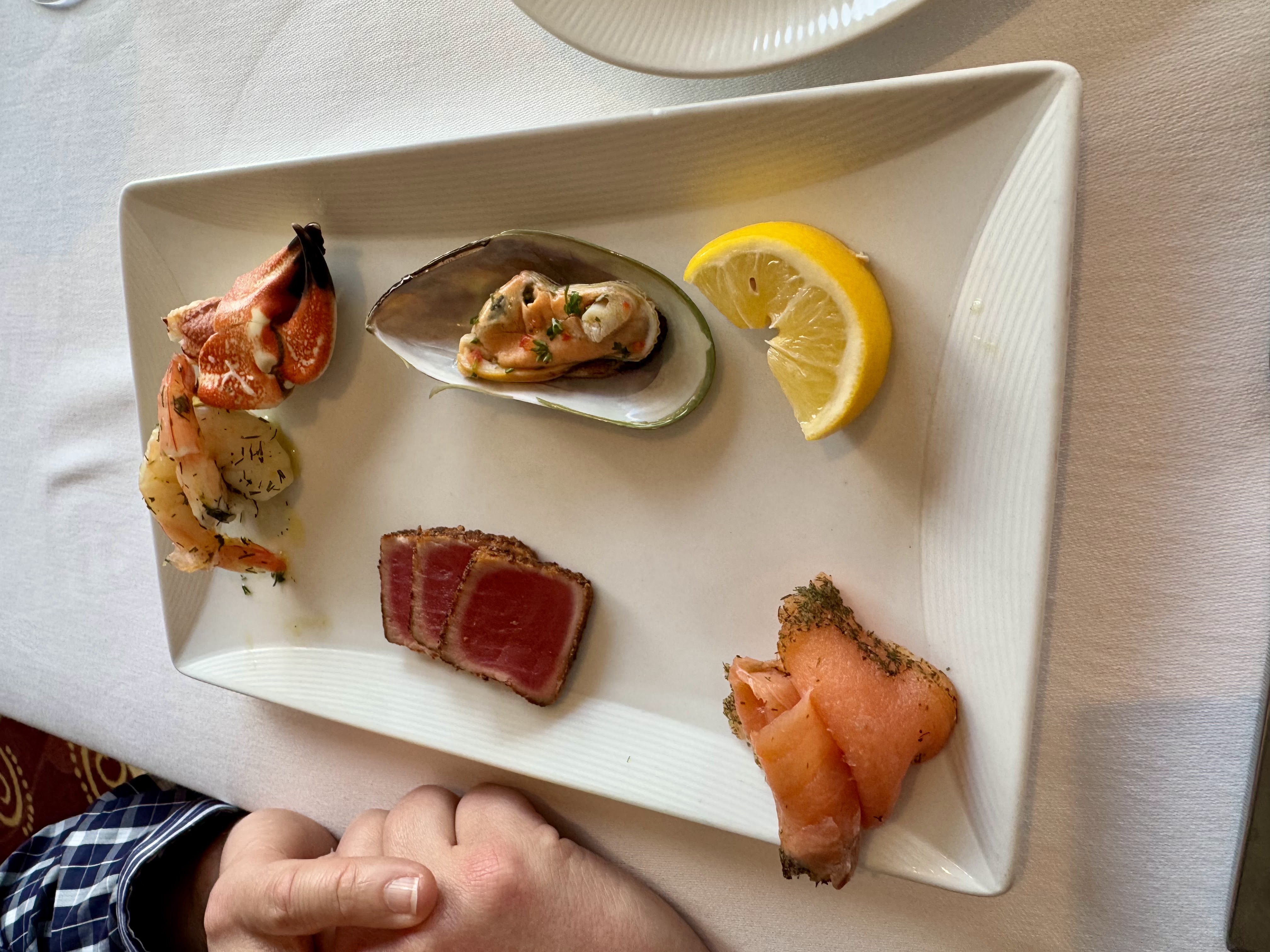 Everything was absolutely excellent and delicious! And the service is chef’s kiss. We were stuffed, and we didn’t come close to eating everything! Too bad they don’t have microwaves in our rooms, we’d have saved some for snacking later! We then waddled back to our room to change clothes and pack up a bit. I hate the last day of a cruise! It’s so sad! And we decided a 5 night cruise is just too short!