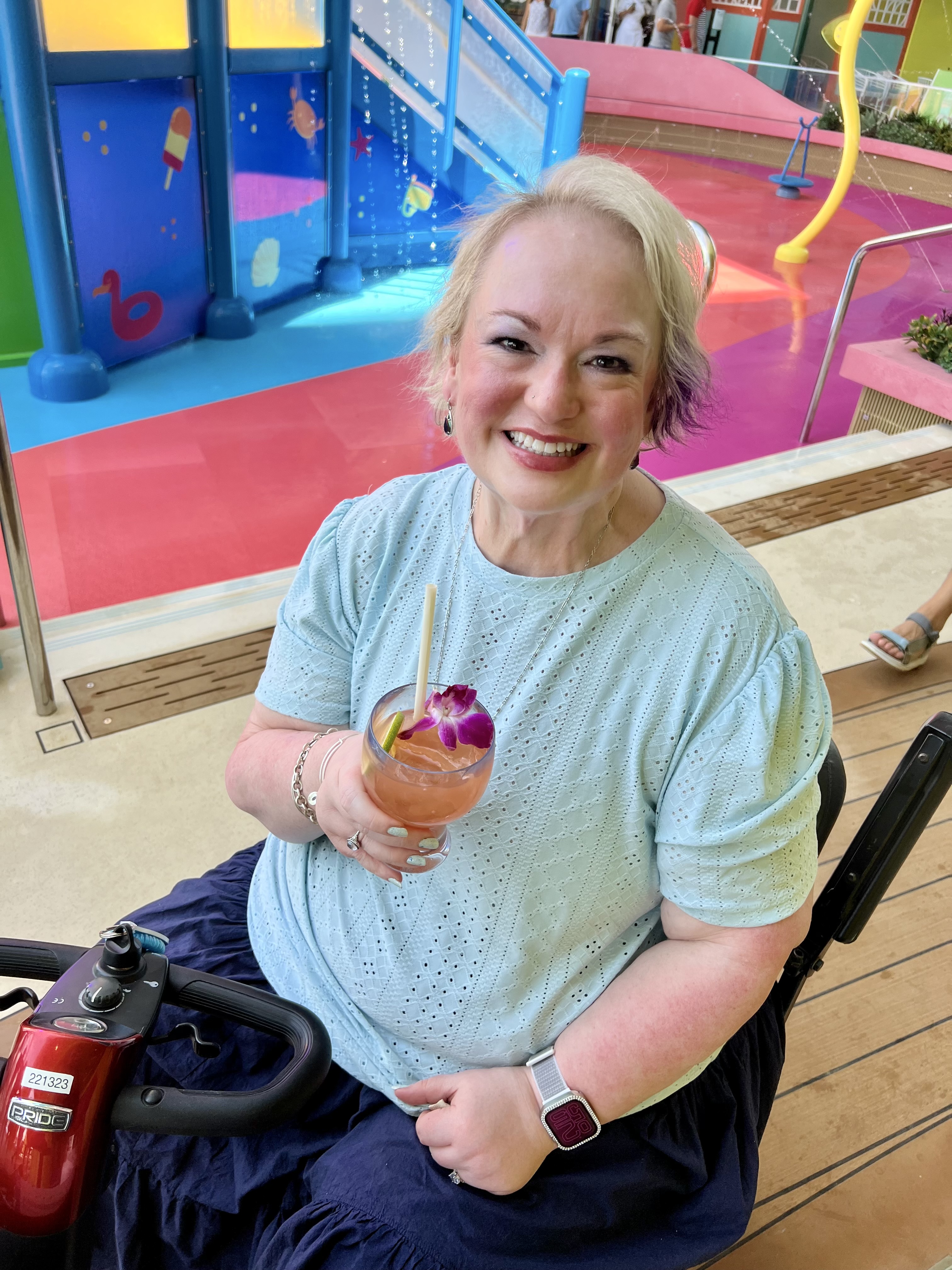 We stopped by the Hideaway pool. An infinity pool up on deck 15!