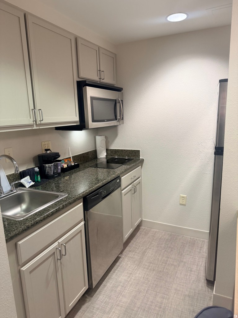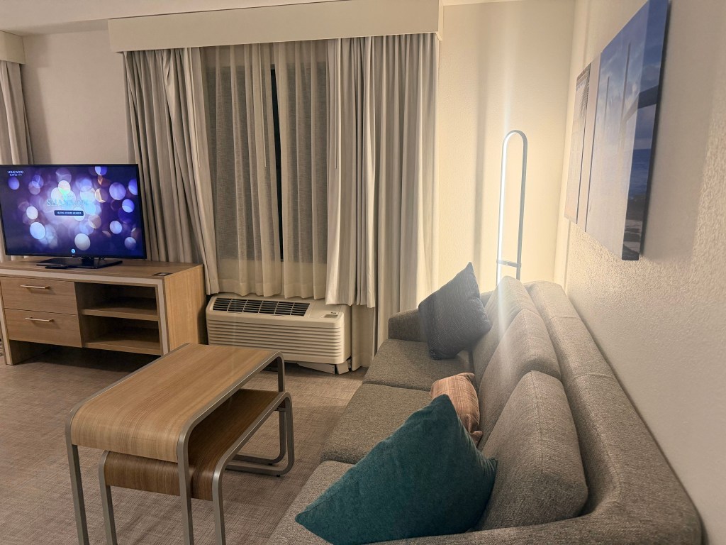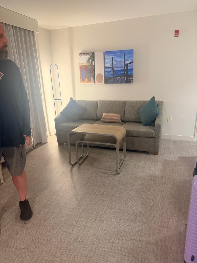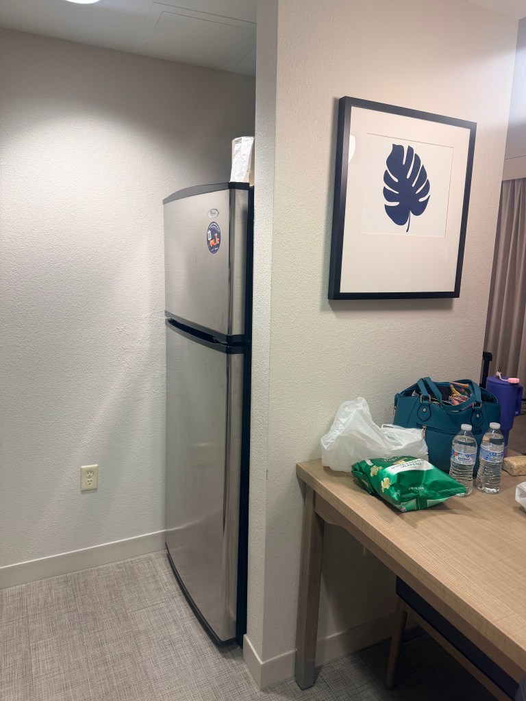 The only problem with Buc-ee’s is that you have to eat in your car because they don’t have tables. We finally made it to our hotel in West Palm Beach, FL after an uneventful drive. We stayed at the Homewood Suites by Hilton. LARGE room, very clean.