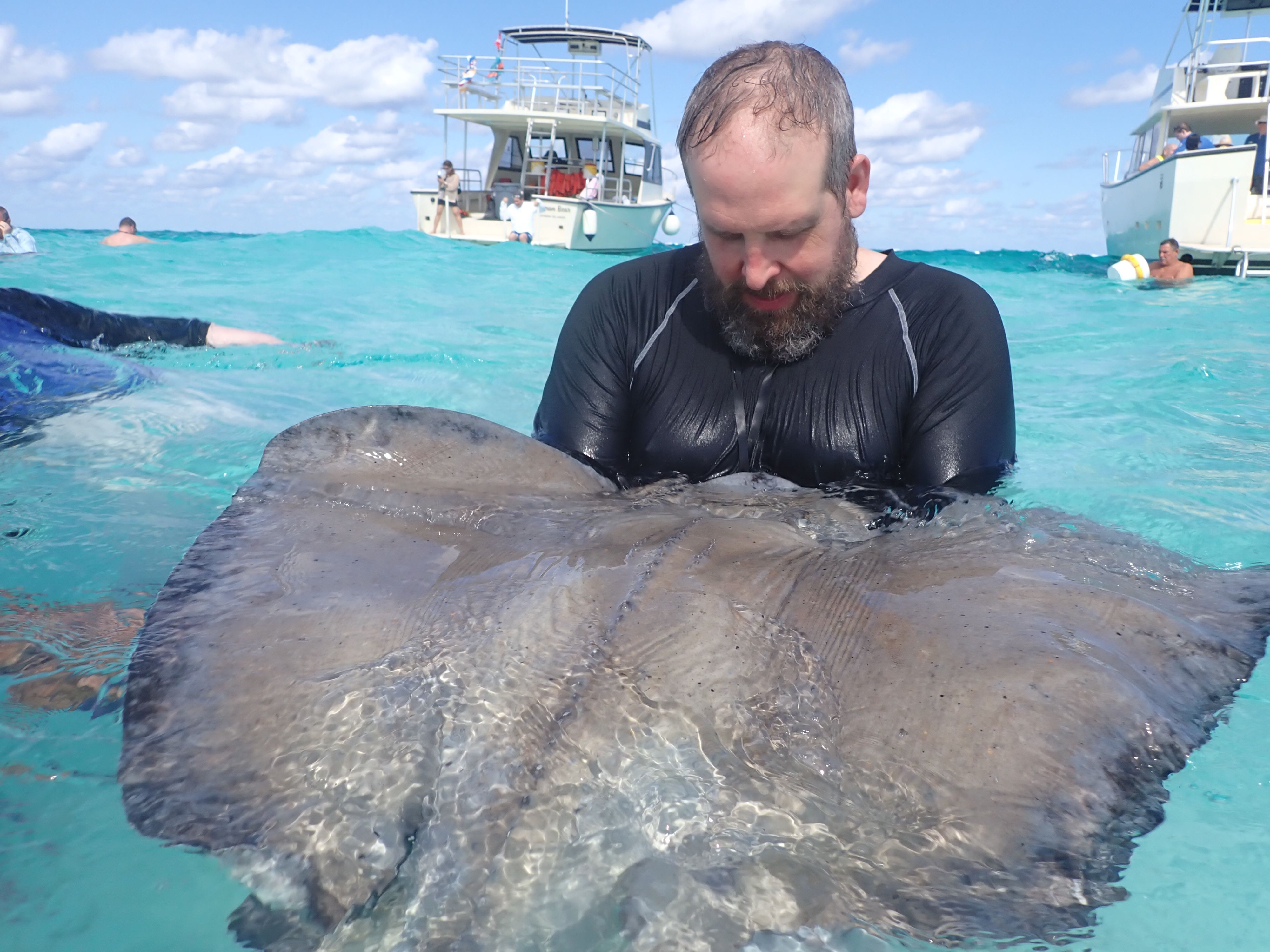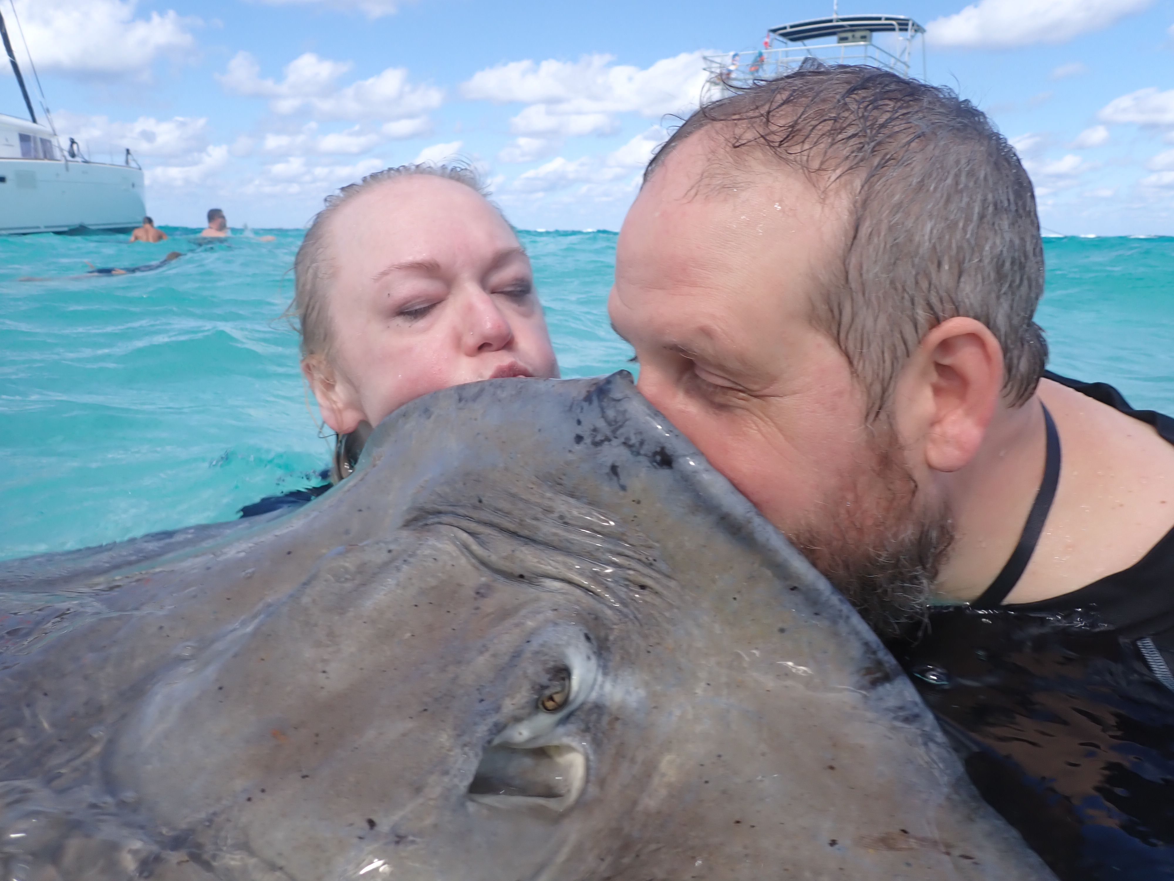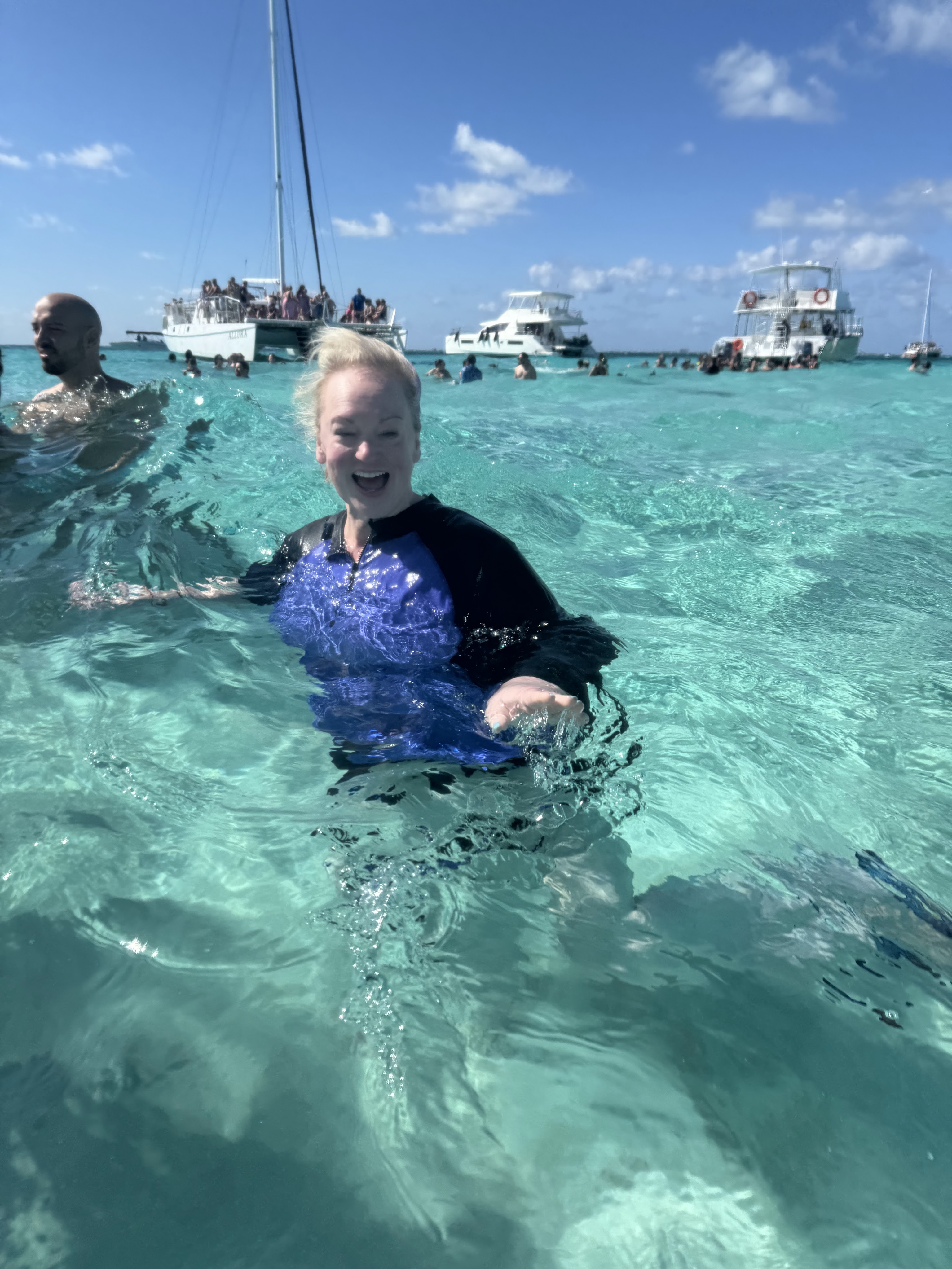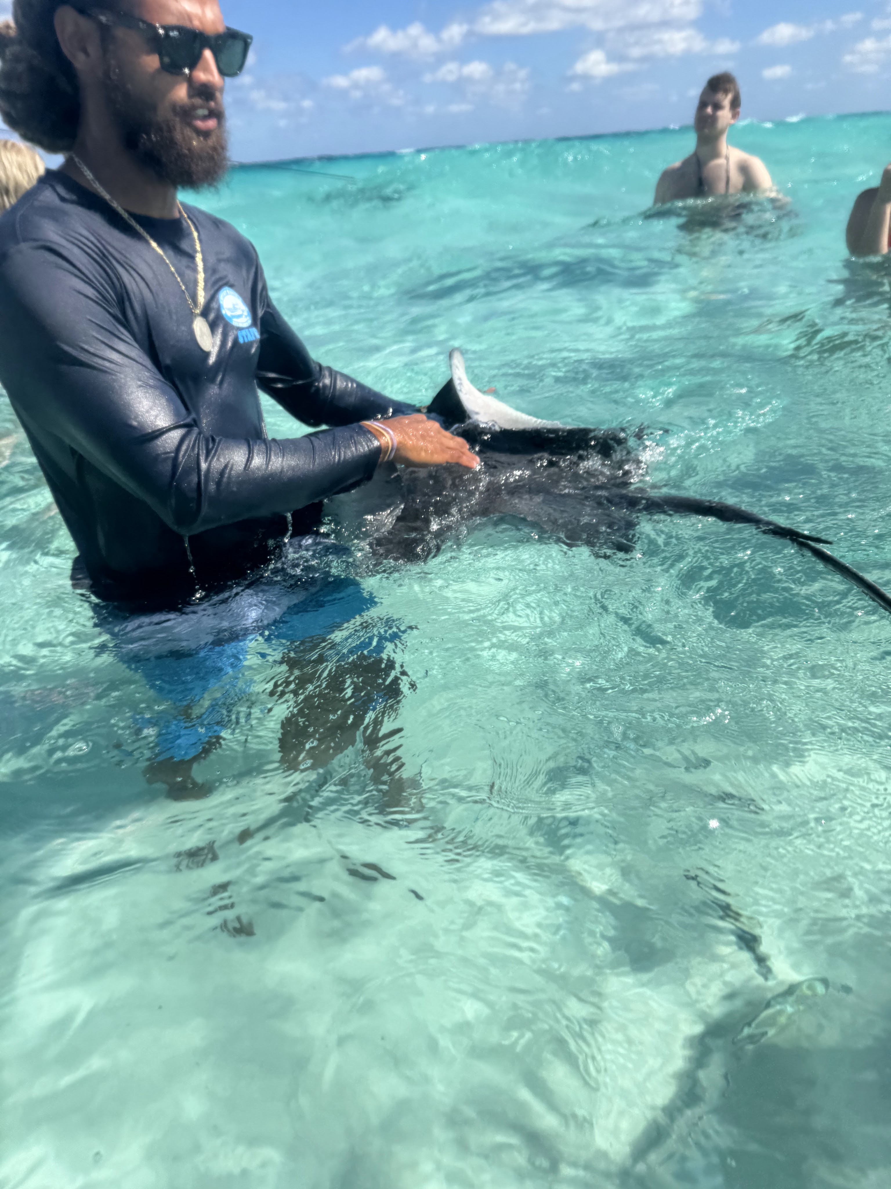 Then everyone boarded the boat again and we set off to our main destination- STINGRAY CITY!!! We were so excited!!! We hadn’t swam with the stingrays in years!