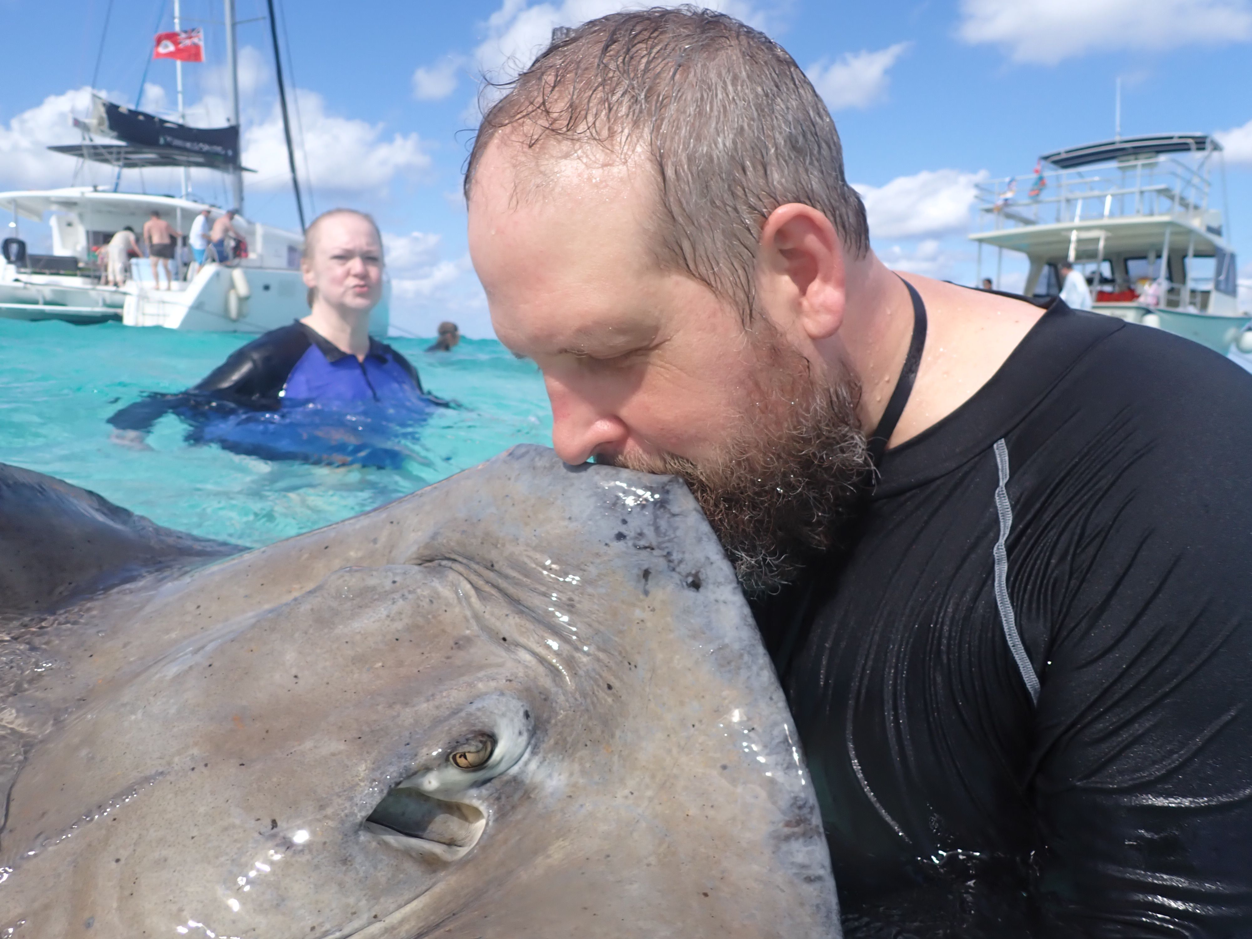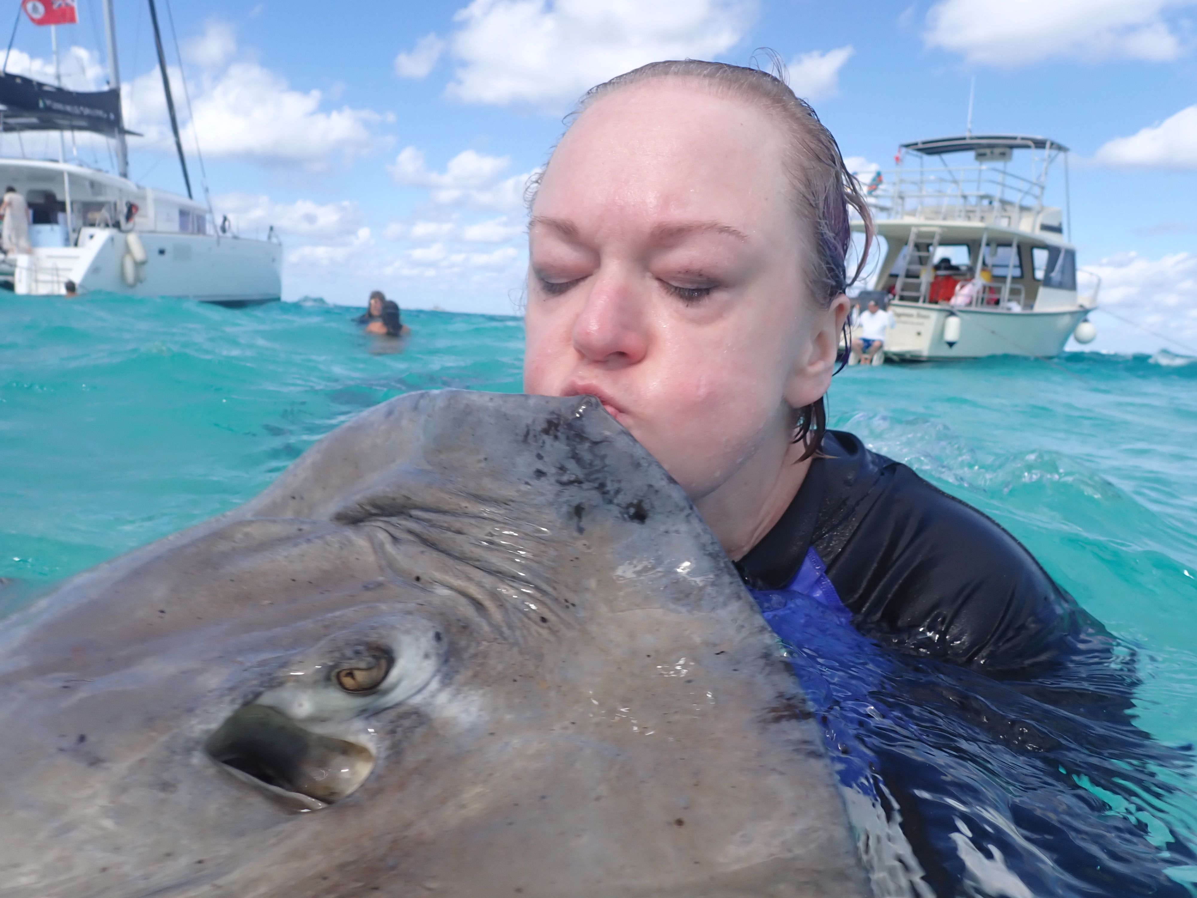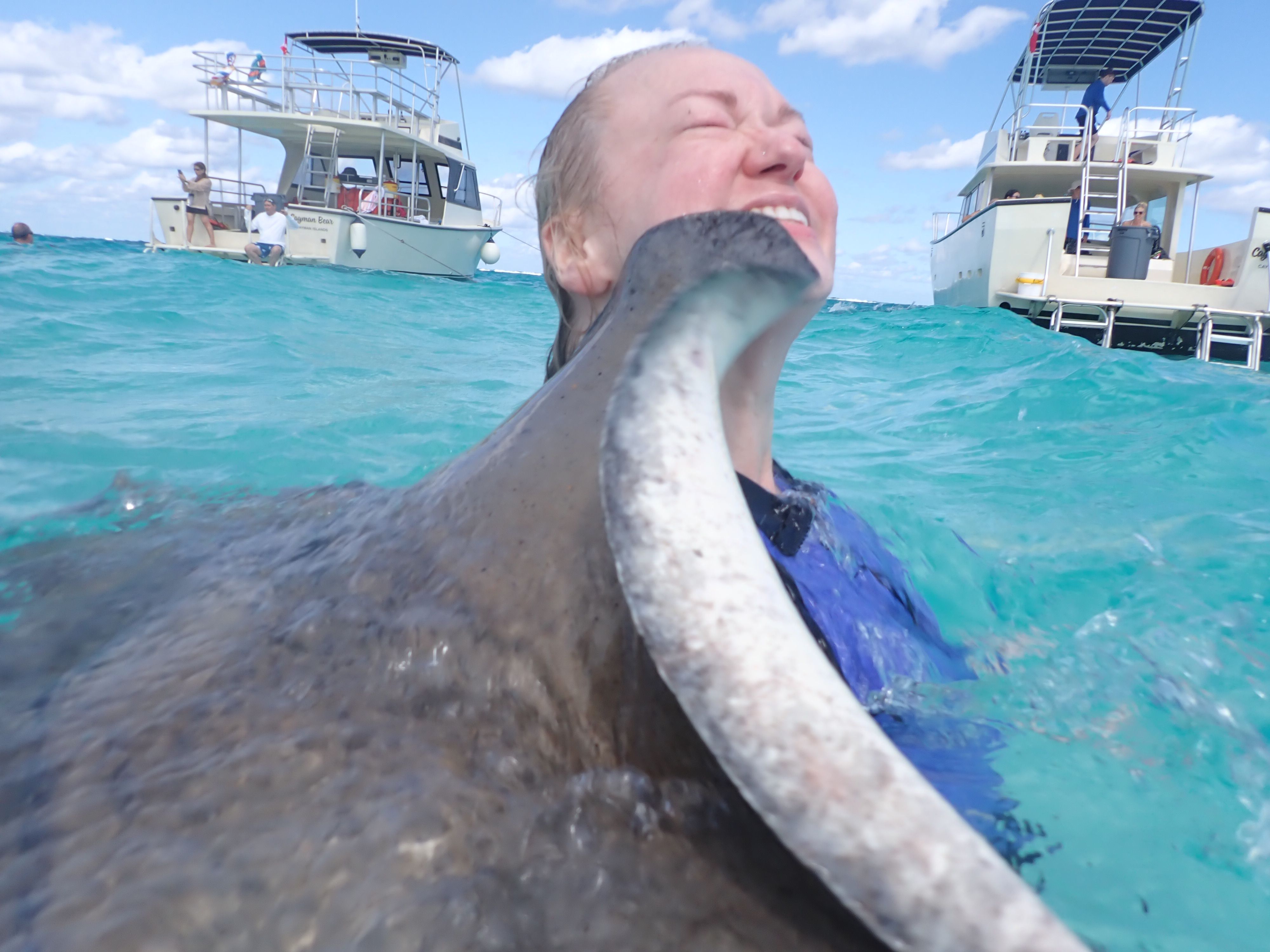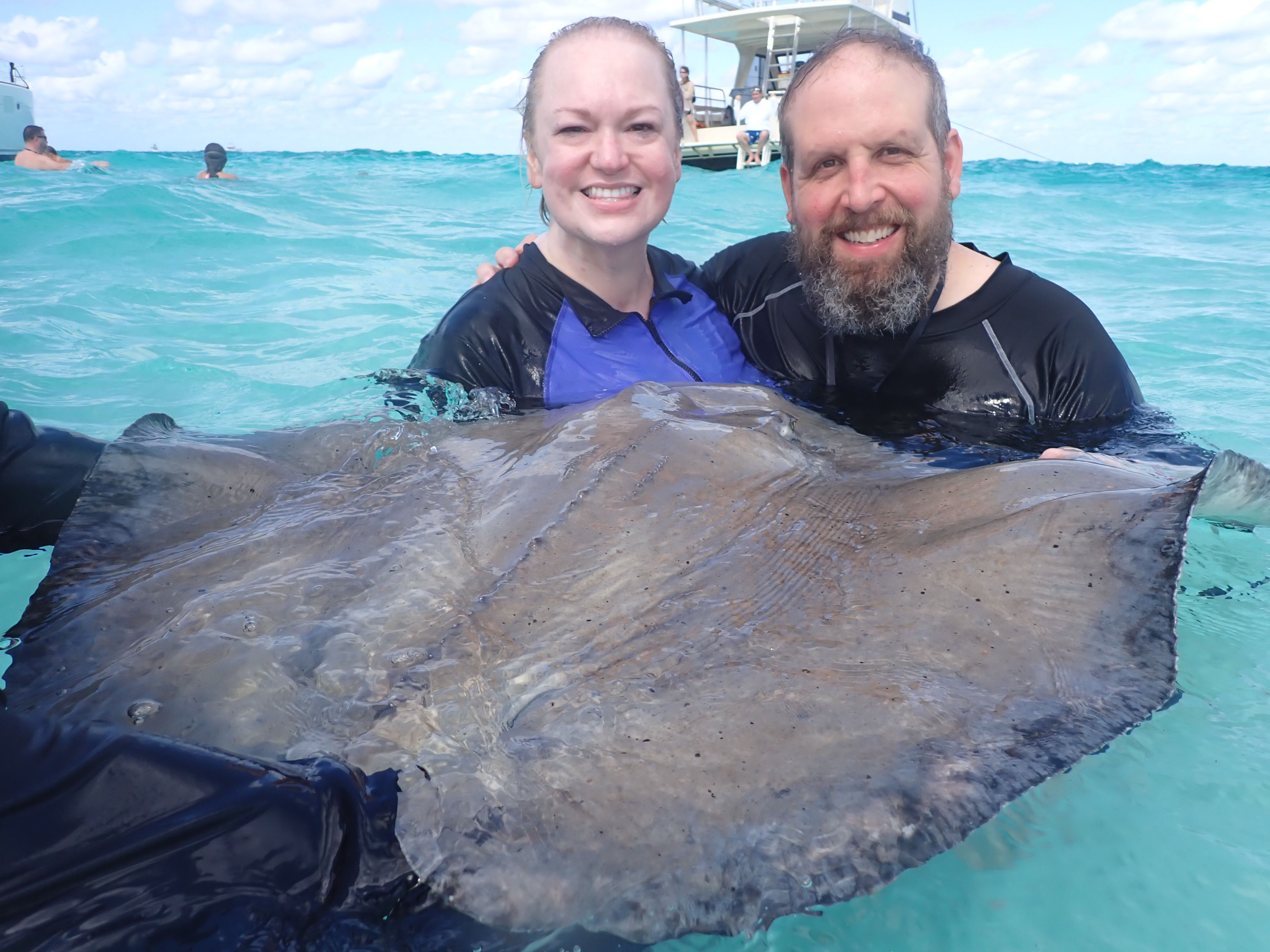 Then everyone boarded the boat again and we set off to our main destination- STINGRAY CITY!!! We were so excited!!! We hadn’t swam with the stingrays in years!