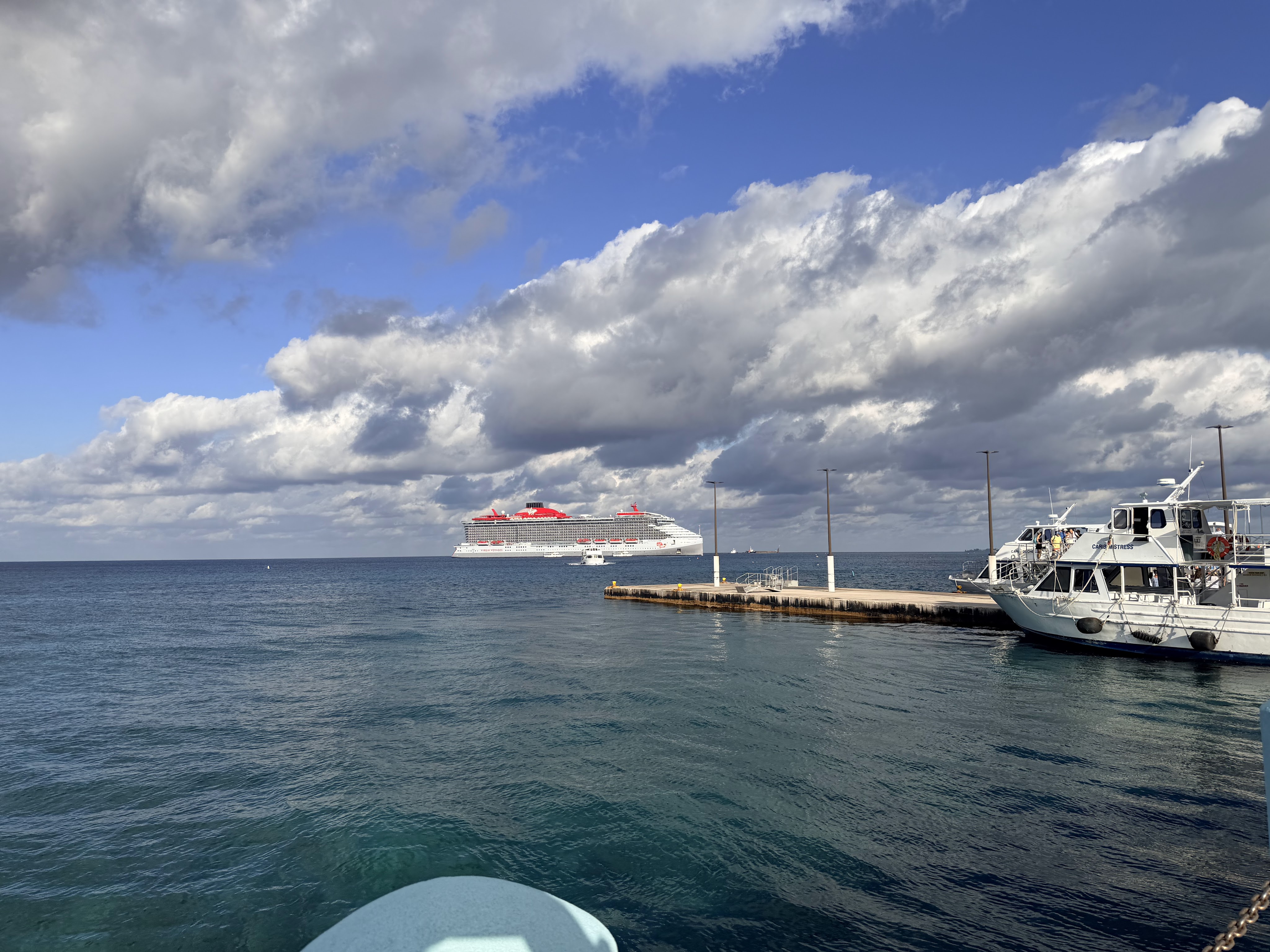 Virgin is v organized with the tender boats, and we were on our tender with minimal waiting. While we were waiting on the tender boat to leave for shore, we saw a sailor boarding the tender wearing a baseball cap that read “I’m sorry about my husband”!!! SO funny!!!