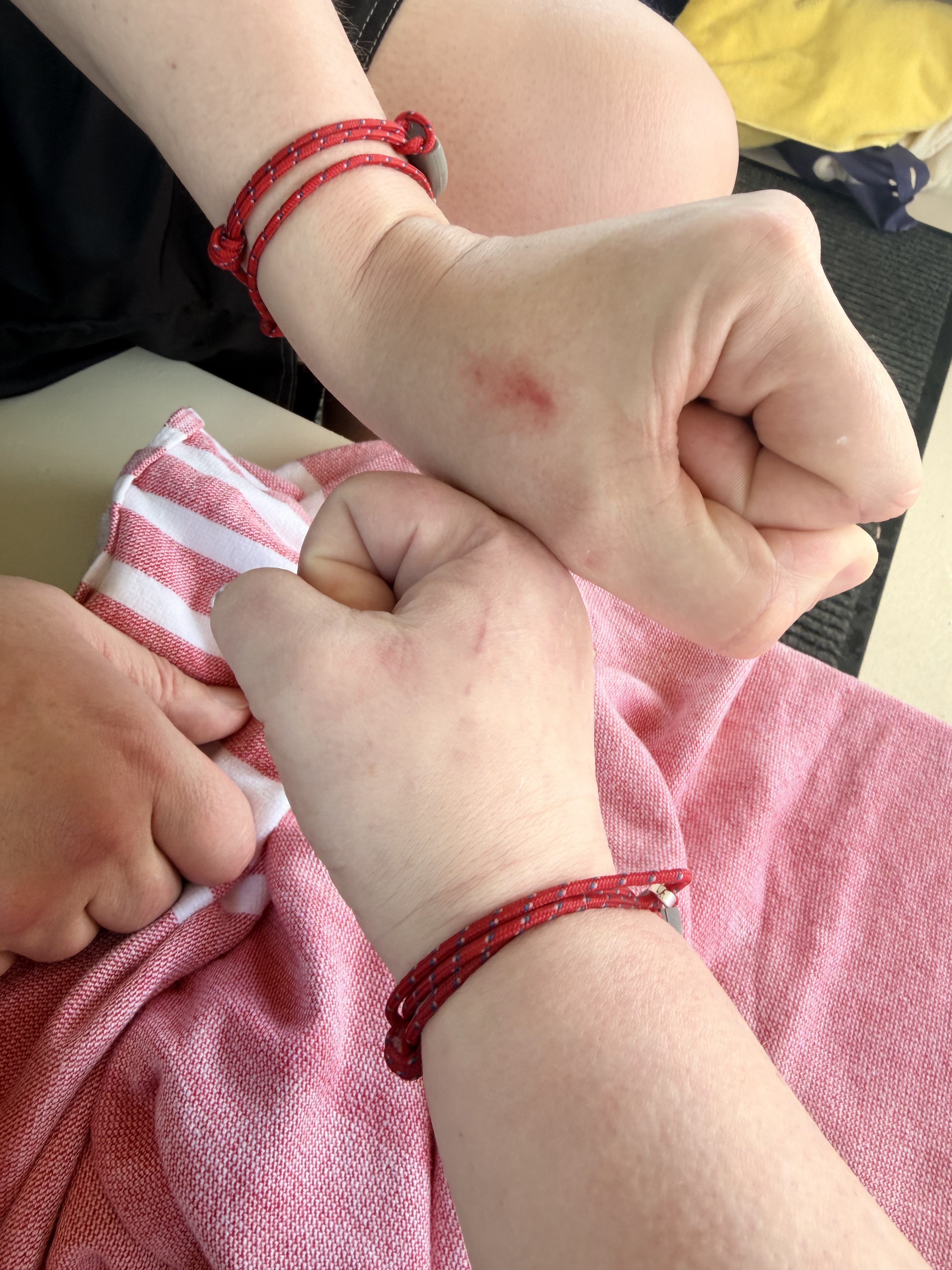 If you’ve never heard of stingray city, it’s a sandbar out near Grand Cayman where the fishermen would stop and clean their catches each day. They’d throw the fishy leftovers over the sides of their boats into the water. The stingrays figured out that if they hung around that sandbar, they’d get fed regularly. Aster gave us squid to feed the stingrays. Stingrays have eyes on their tops and mouths on their undersides and they suck the squid up out of your fist. They gave both me and CSP hickeys on our hands!!!