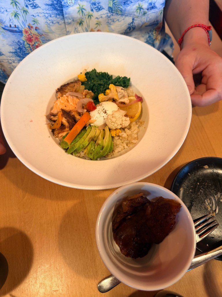 CSP had the salmon bowl and the mushroom tartare. He really liked both! And of course he had a cruffin and their famous bacon!