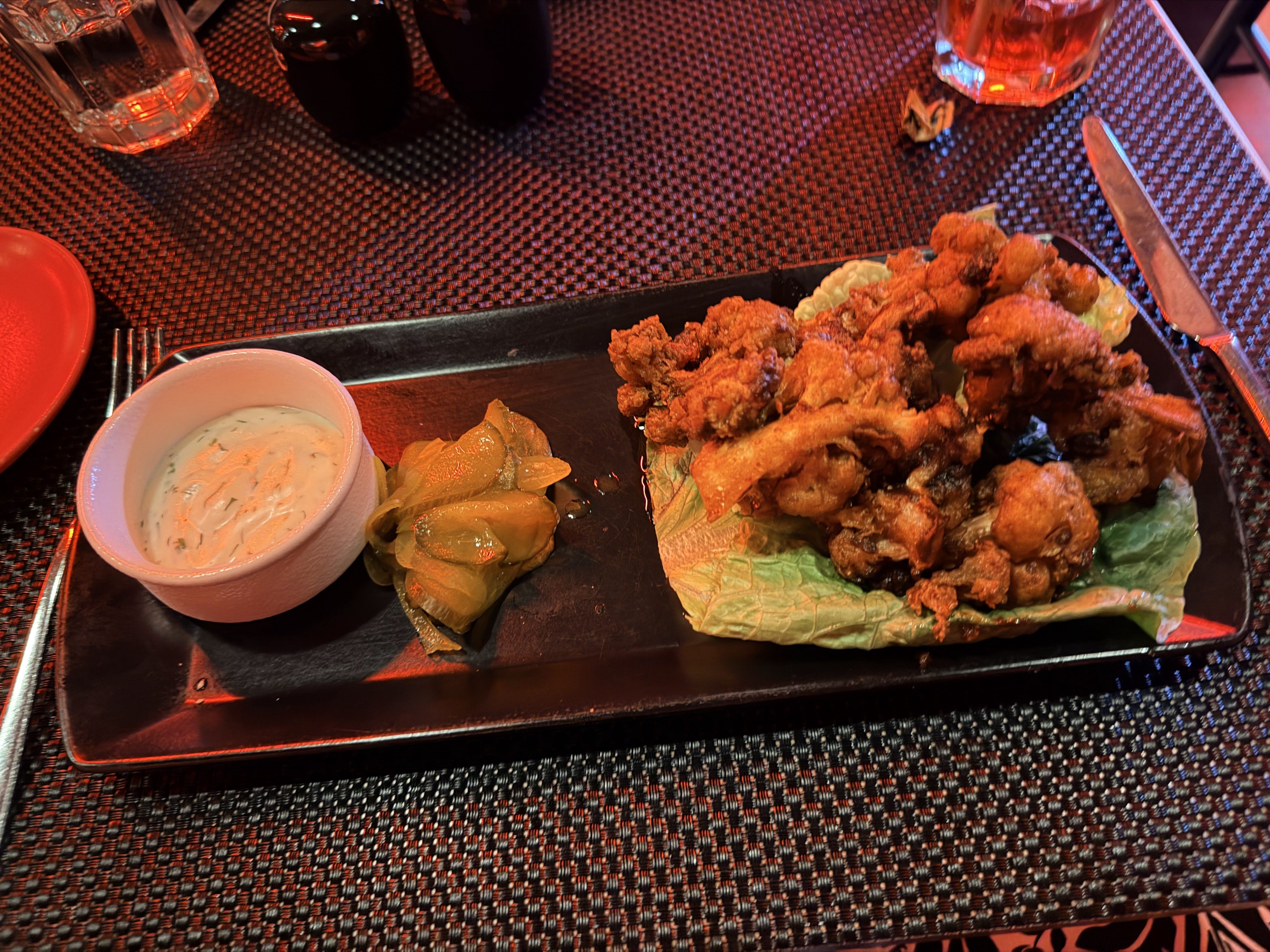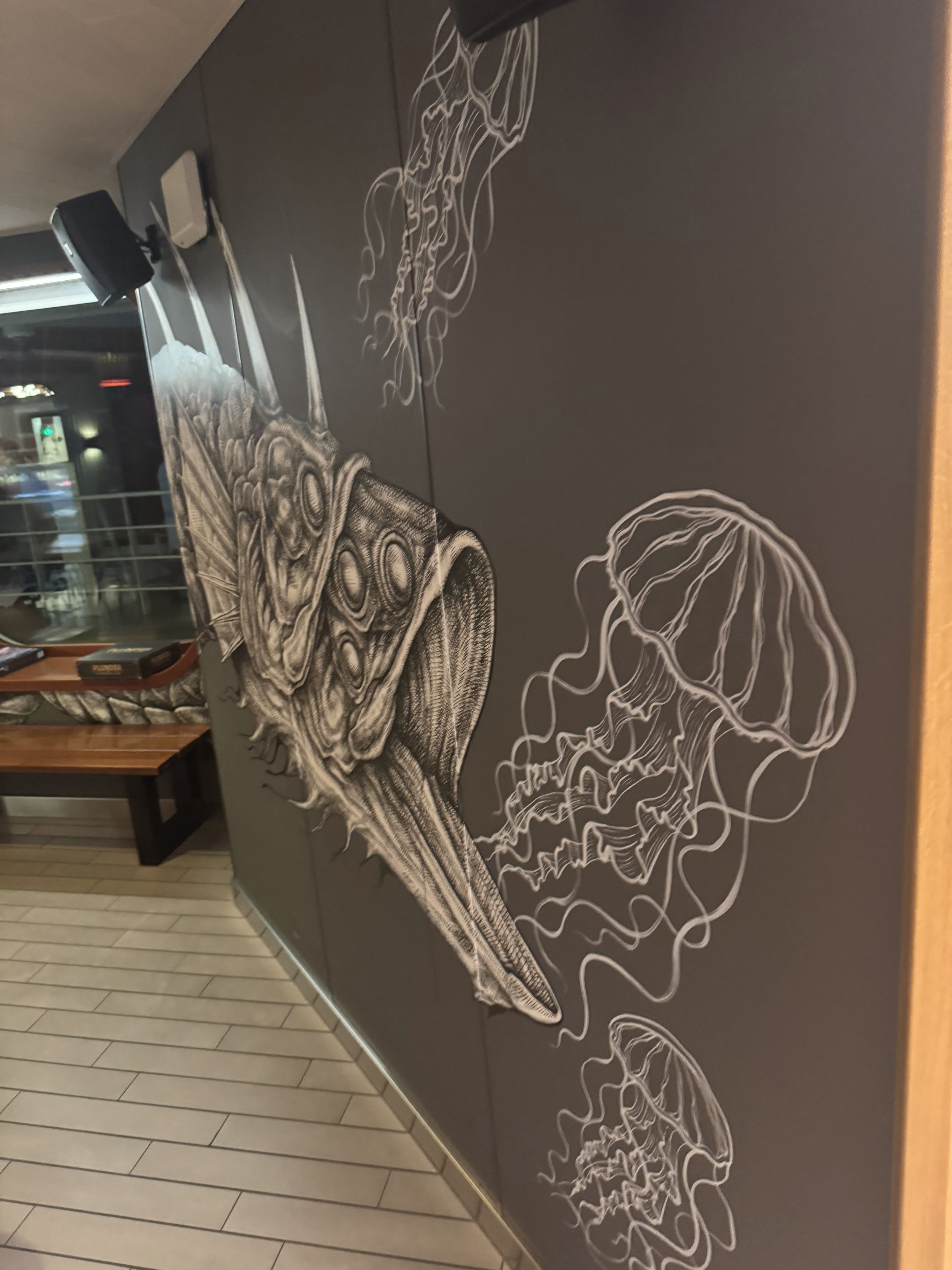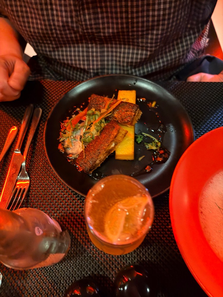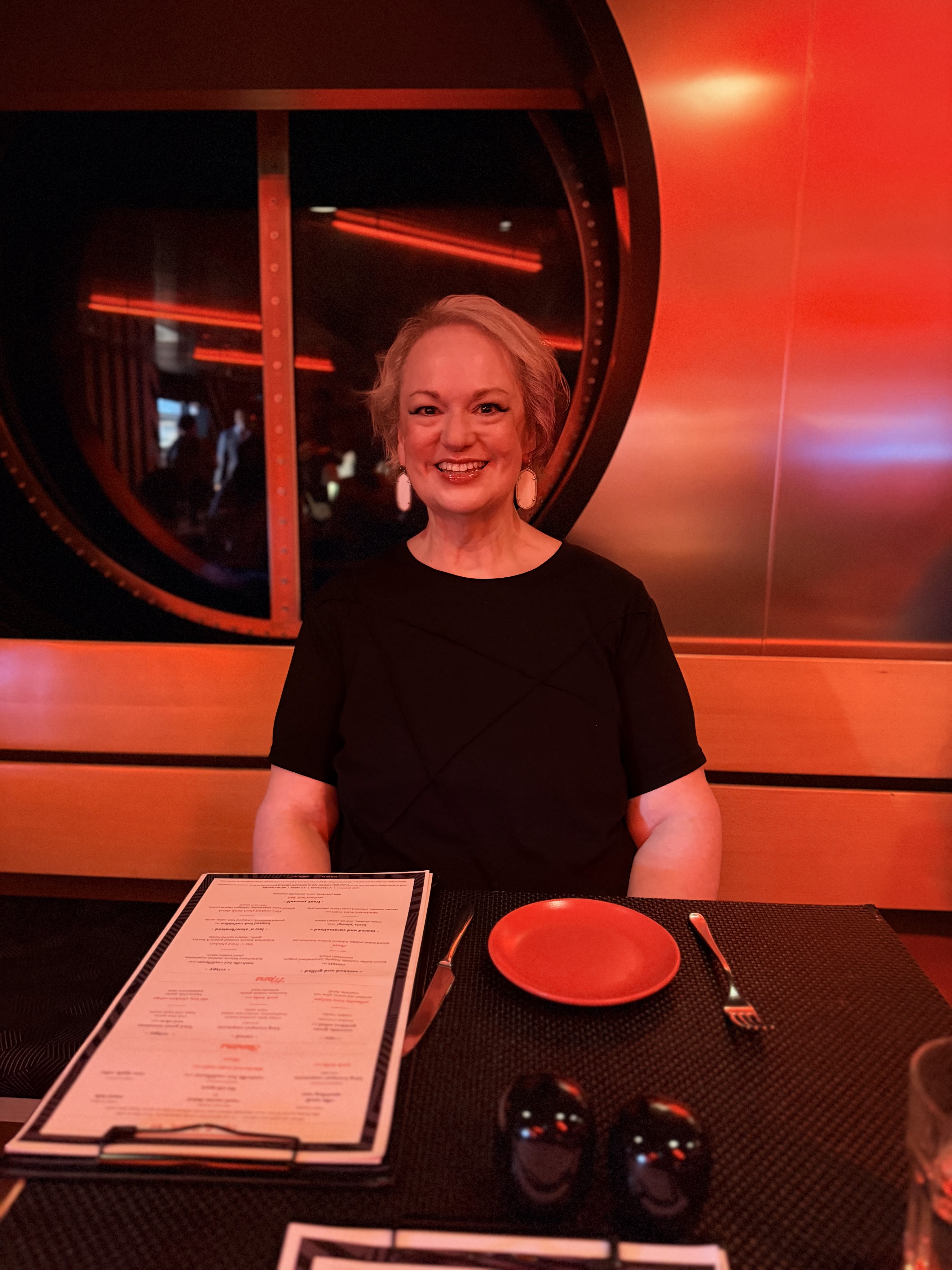 A while later we went to the Virgin Voyage’s store and bought some Virgin Voyages shirts (I can wear them to work). Then it was time to go back to our room to freshen up for trivia and dinner. This trivia was celebrity trivia and we won again! We won 2 free drinks! Yay!!! This time, instead of gift cards for the drinks, the trivia host took us straight to the bar and had us order 2 drinks right then.