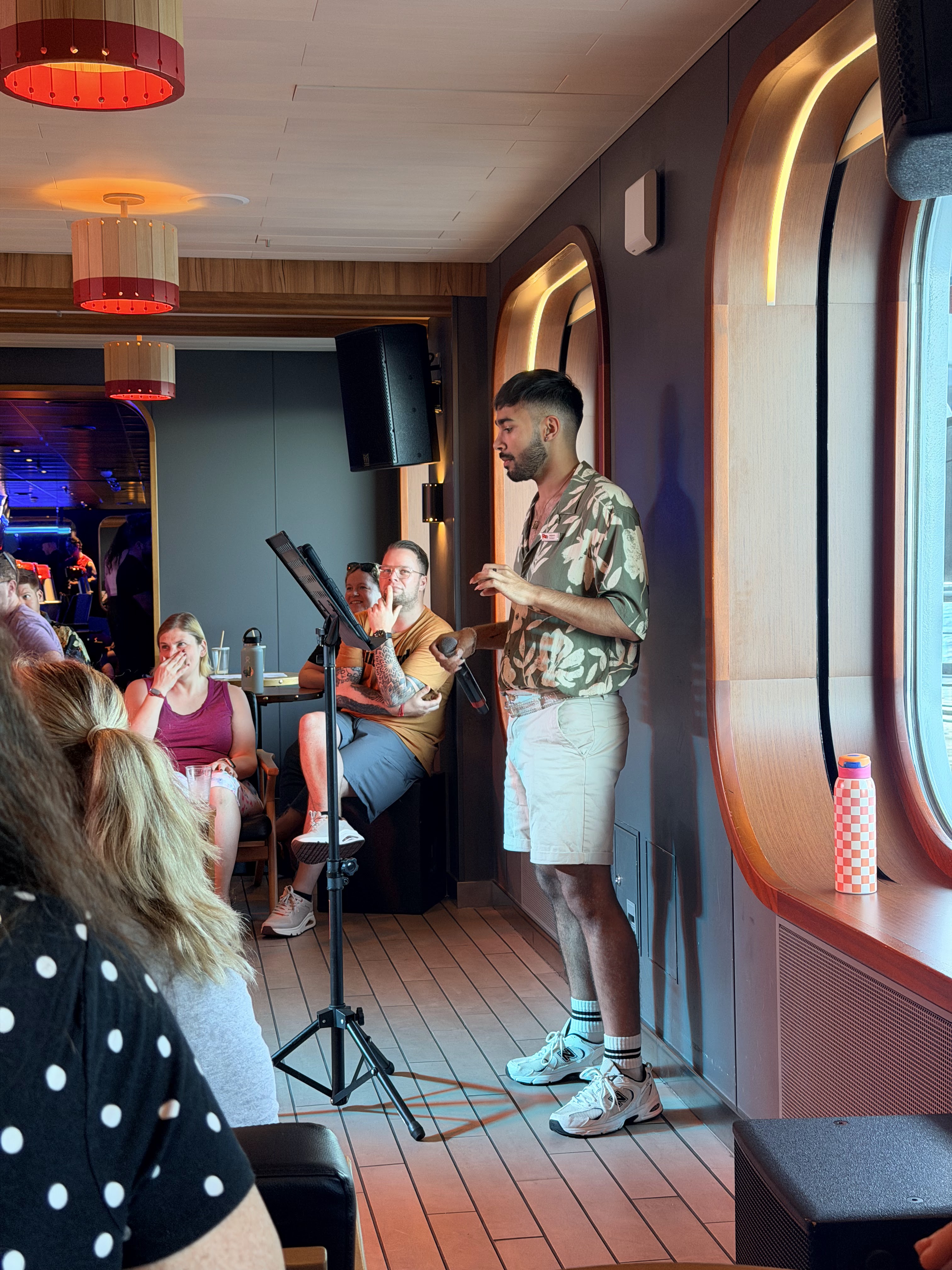 We chatted after trivia a bit and he told me that working on the Happenings cast on Virgin Voyages is his dream job! He’s such a delight and has the best British accent.