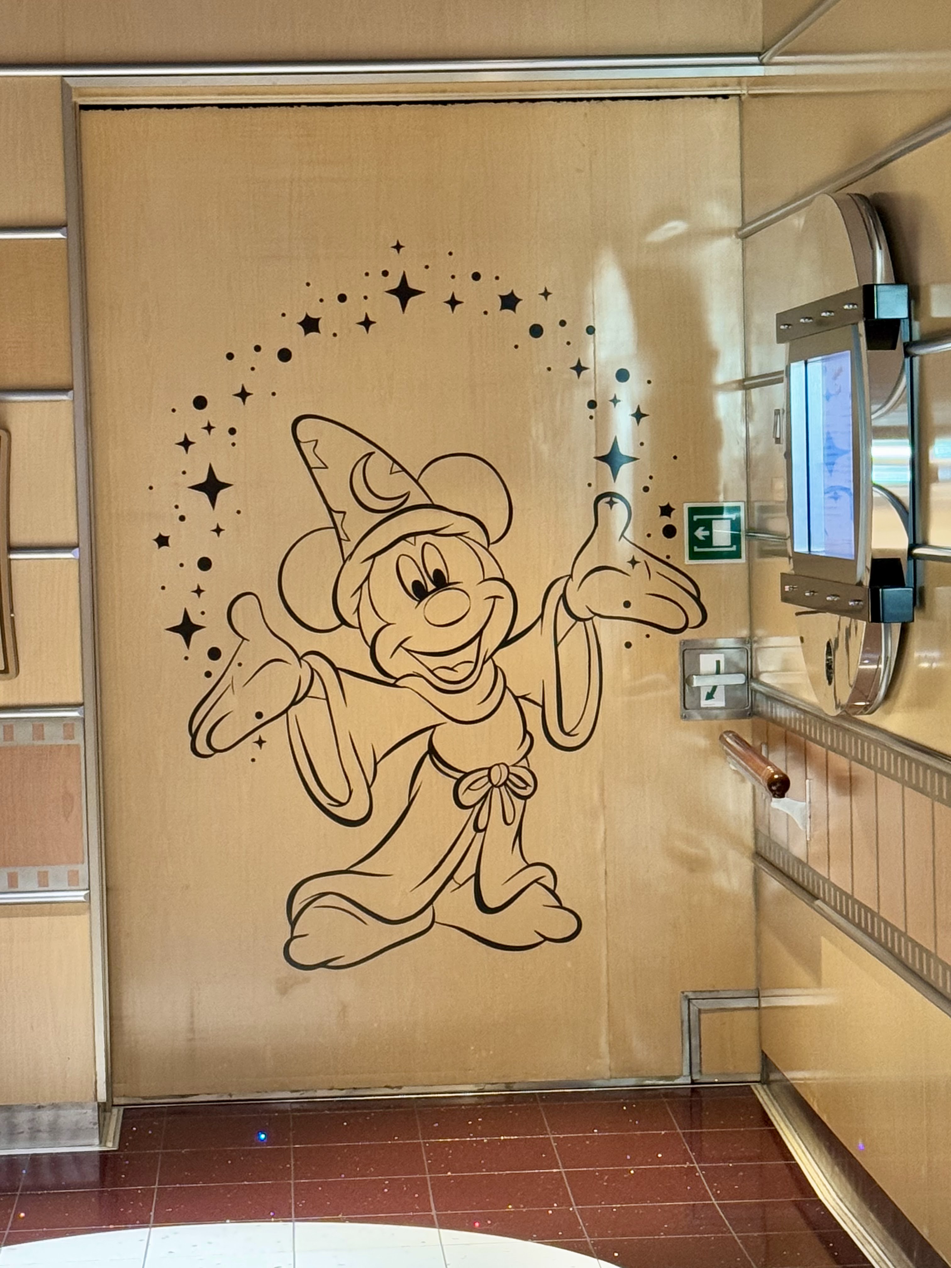 We passed this door. It’s just a regular door that had been closed. But Disney decorated it with Sorcerer Mickey! Love that DCL makes the ordinary extraordinary!