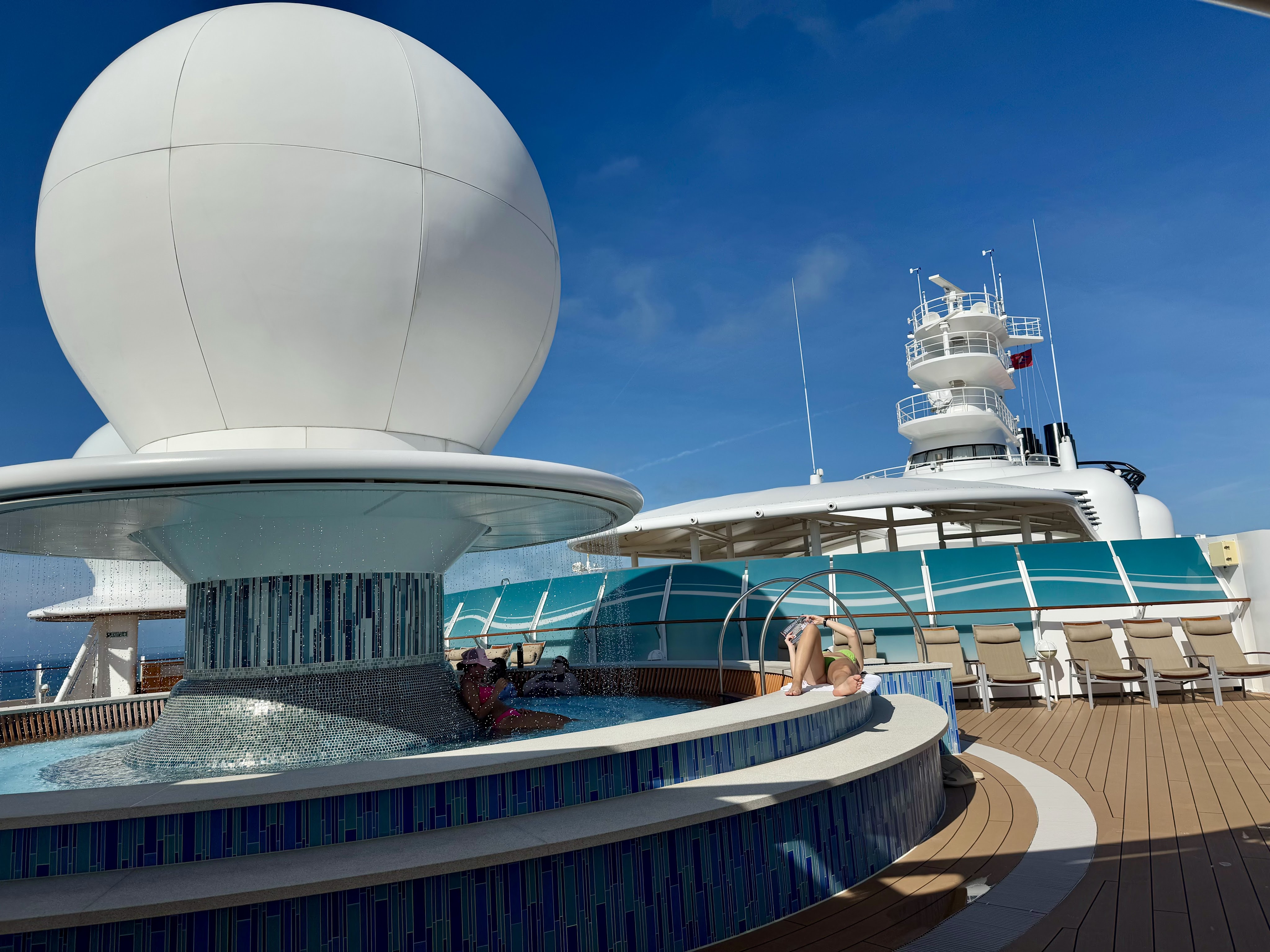 We stopped by deck 11 to fill up our tumblers at the bev station then headed up to Satellite Falls. It was practically empty since everyone was still on the island.