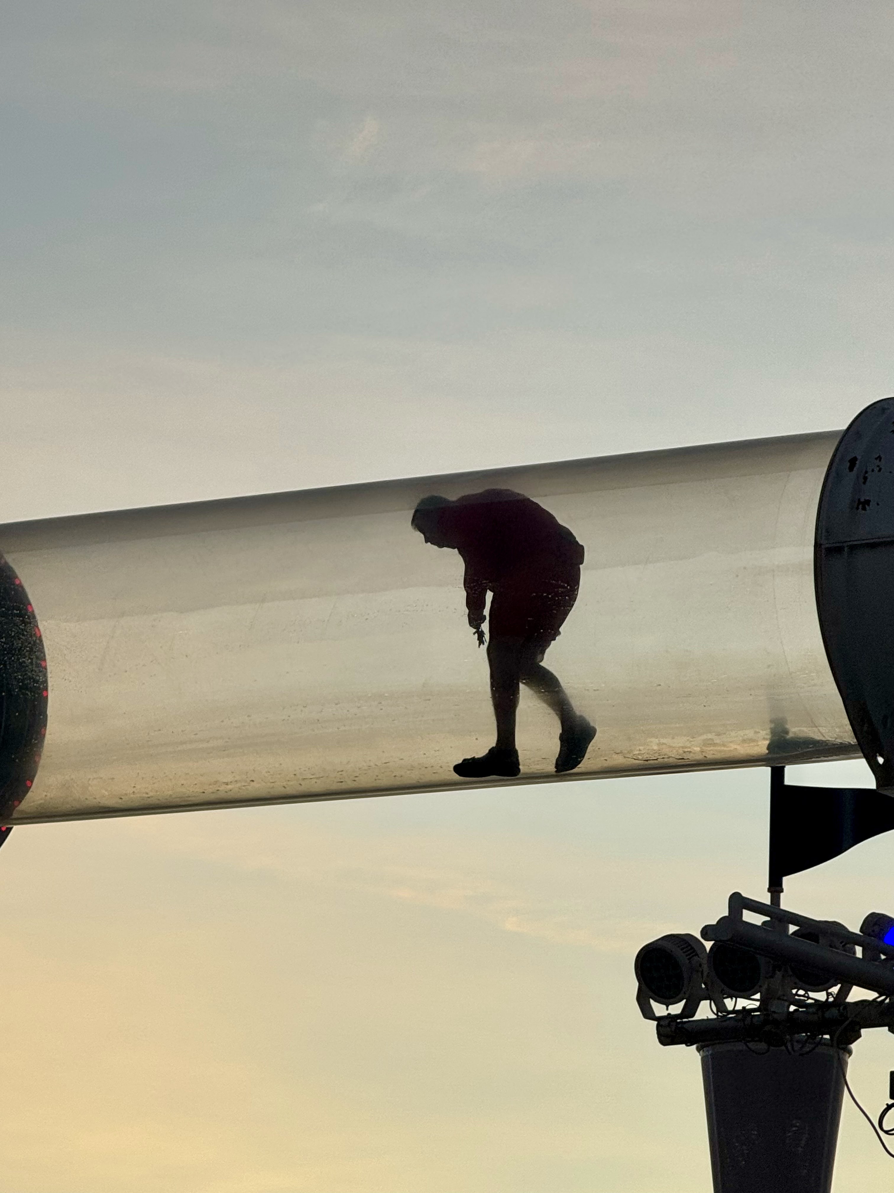 We dropped our sweets off in our room then went back to deck 11 so I could find a spot to camp out in while CSP rode the Aqua Duck. I found the perfect spot so I could video CSP as he flew by on his wee raft. Well CSP showed back up at my chair not 10 minutes after he left because they were doing maintenance on the Aqua Duck. I looked up and sure enough, there was a dude walking his way through the tunnel. Whomp whomp.